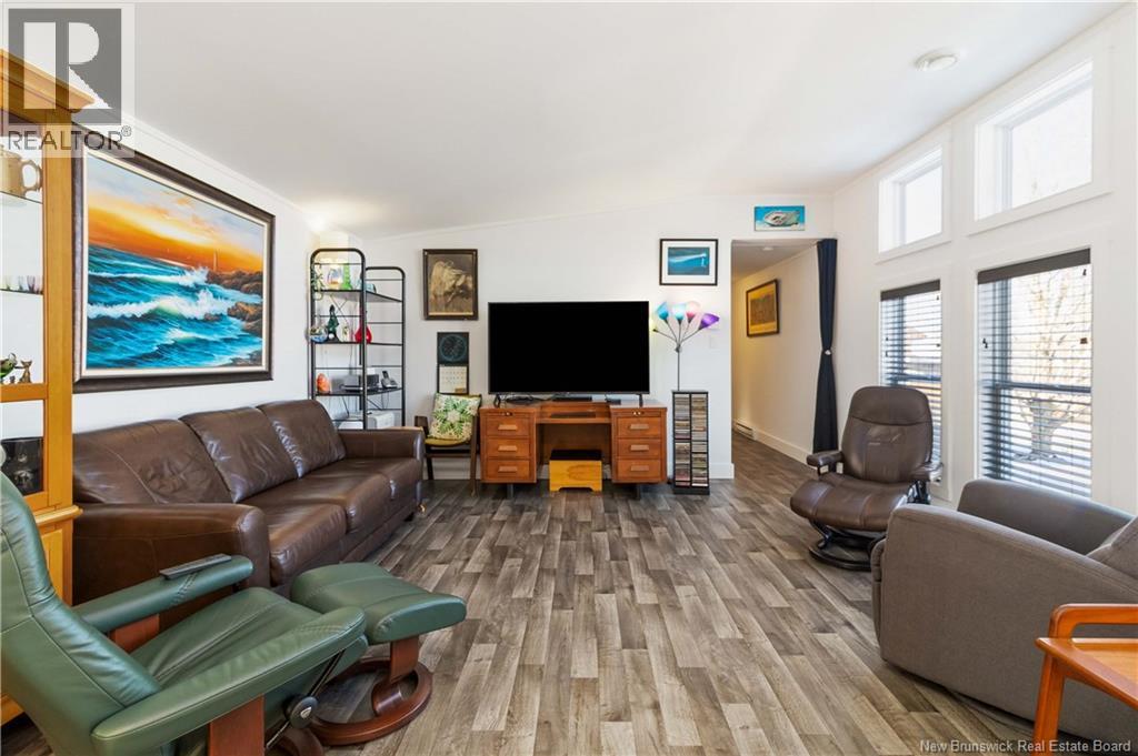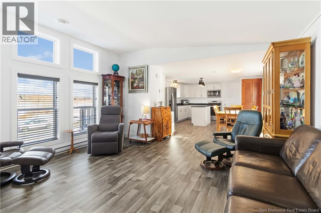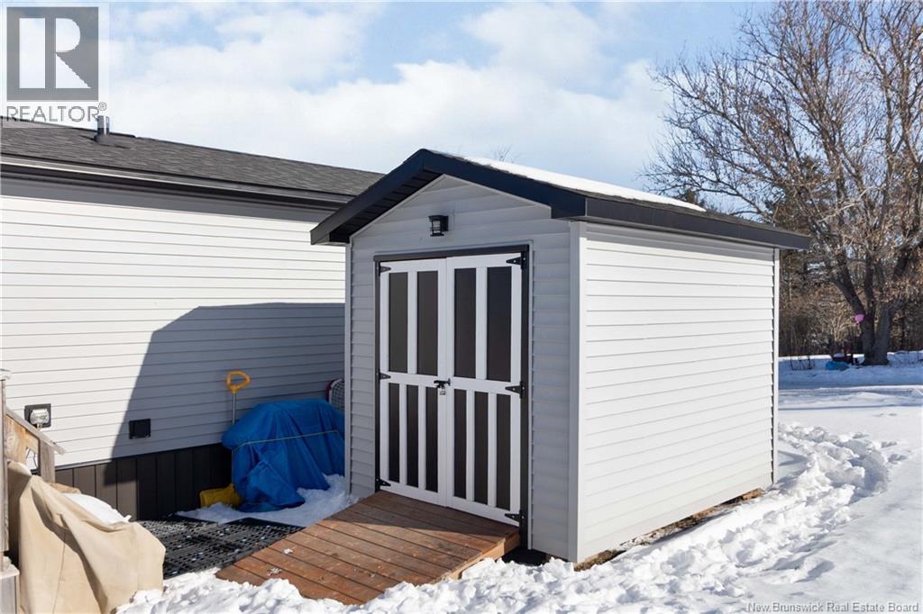 Wake up to unobstructed views of the Petitcodiac River. Built in 2020, this modern Maple Leaf home offers style, comfort, and energy-smart living in a quiet cul-de-sac with a dedicated green space. Step inside and youre greeted by abundant natural light pouring through oversized windows that frame the water. The kitchen features crisp white soft-close cabinetry, a central island, and stainless Whirlpool appliances, all included. A patio door off the dining area leads to the rear deckperfect for relaxing or entertaining. The living room impresses with its custom atrium ceiling and panoramic river views where eagles and wildlife are part of daily life. The primary bedroom continues the experience with large windows, another atrium ceiling, a walk-in closet, and a spa-inspired bath. Two additional well-proportioned bedrooms and a second full bathroom with deep soaker tub sit at the opposite end for privacy. Enjoy year-round comfort with a mini-split heat pump and equalized power costs of just $176/month. An 8' x 10' matching shed provides excellent exterior storage. Transferable LUX warranty to 2030. Flexible closing available. Contact your favourite REALTOR® to schedule your private viewing. (id:6769)