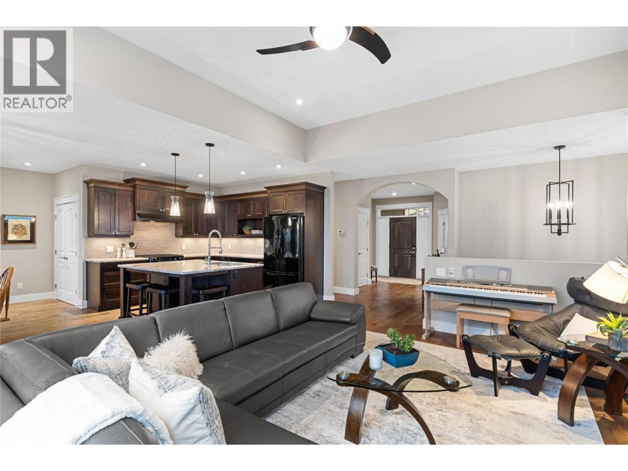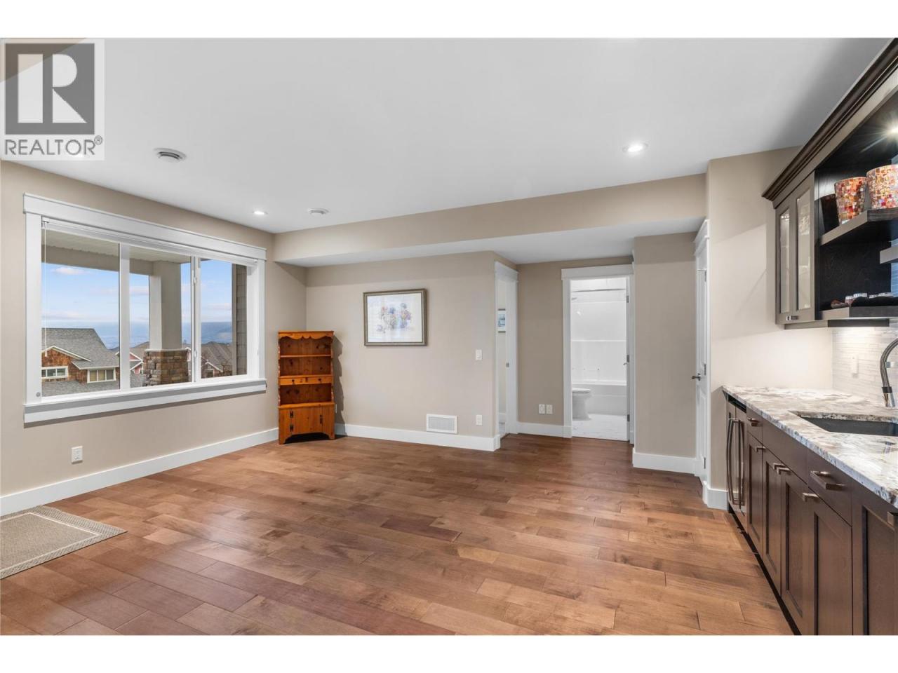 Surprisingly spectacular lake views from this impeccably maintained rancher with walk out basement. Located on a quiet and exclusive laneway in Kettle Valley. Over 2600 sf of upgraded finishes and thoughtful design in this perfect 4 bedroom (+ office) home. This home has been lovingly cared for and impeccably maintained. Enjoy gorgeous lake views from your primary bedroom, kitchen, great room and the spacious patio. No expenses were spared in the building or finishing of this home, from hardwood floors throughout both the upstairs and downstairs, designer blinds/window coverings, upgraded LED lighting to the granite countertops and full closet organizers. An entertainers dream home with an oversized patio off of the great room (to enjoy the lake views) as well as a gorgeous bar with wine fridge in the basement just off of the family room. This home is filled with natural light and enjoys a nice open floor plan. A stamped concrete driveway/front porch, 2 car garage, underground sprinklers with a low maintenance yard and a new A/C unit in 2025 help to round out this offering. (id:6769)