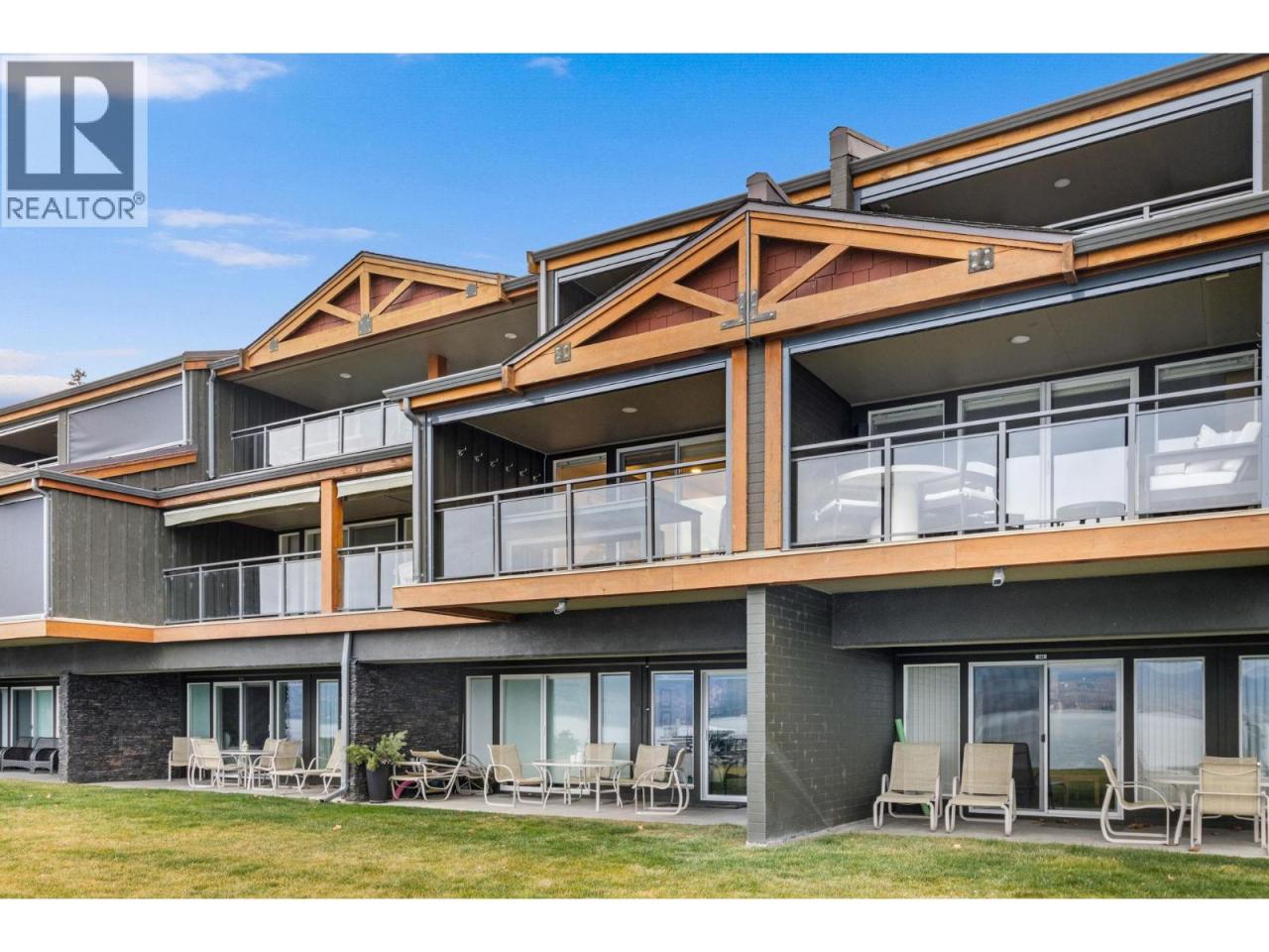 Exceptional Lakefront Living in an exclusive, private and Low-Density community, experience rare waterfront luxury in this renovated two-level condo within an exclusive community spanning six acres with 1,000 feet of private lakefront. With only 47 suites, this serene enclave offers privacy and natural beauty, backing directly onto a protected provincial park. The thoughtfully designed layout has been fully updated and features three bedrooms upstairs, three full bathrooms, and three private balconies, in suite laundry as well as offering stunning lake views and a perfect balance of living and sleeping spaces. The kitchen is bright and open with high end appliances including a wine bar and wine fridge. Enjoy resort-style waterfront living with a private boat slip, on-site boat storage, private beach, pool, hot tub, gym, tennis courts, and a BBQ area ideal for entertaining. This private retreat comes fully furnished (apart from personal items) so whether you are looking for a new lakefront home, vacation property or turnkey investment opportunity this home is move in ready. An option to participate in the rental pool provides flexibility and income potential, making this an outstanding opportunity for both personal enjoyment and investment. (id:6769)