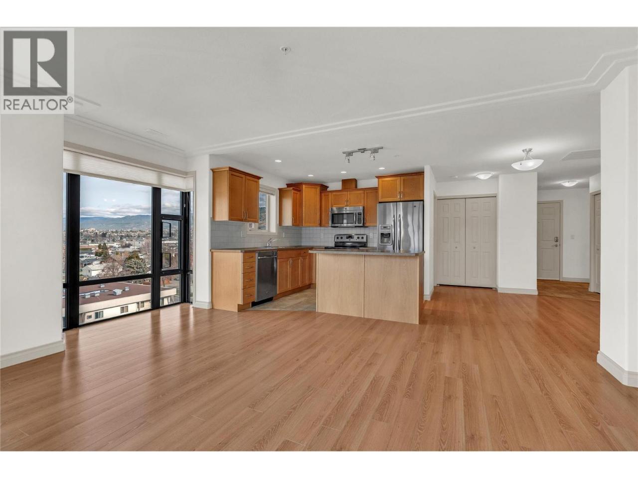 Best location in the building! Welcome to easy living in this bright, move-in ready condo located in Phase 2 of Athens Creek Towers—perfectly positioned on the 7th floor as a NW CORNER unit with incredible views. Whether you're downsizing or looking for a low-maintenance lifestyle, this home has it all! This 2 bedroom, 2 bathroom unit offers a smart open layout with large windows wrapping around the living space for natural light all day, and a gas fireplace you can enjoy from the kitchen, dining, and living areas. The spacious patio expands your living space even further. The kitchen has plenty of cabinetry and a large island with bar seating. The primary bedroom includes a walk-in closet and ensuite with a walk-in shower, while the second bedroom is perfect for guests, hobbies, or a home office. There's also ample in-unit storage to keep everything tidy, while also having a designated secured storage locker underground as well. Step outside and you’re literally across the street from Cherry Lane Mall, Save-On-Foods, London Drugs, banks, pharmacies, a walk-in clinic, and Lions Park. Pet-friendly building allows 2 pets (dogs or cats). Great amenities like a fitness room, library, and regular social events. Quick possession possible! (id:6769)
