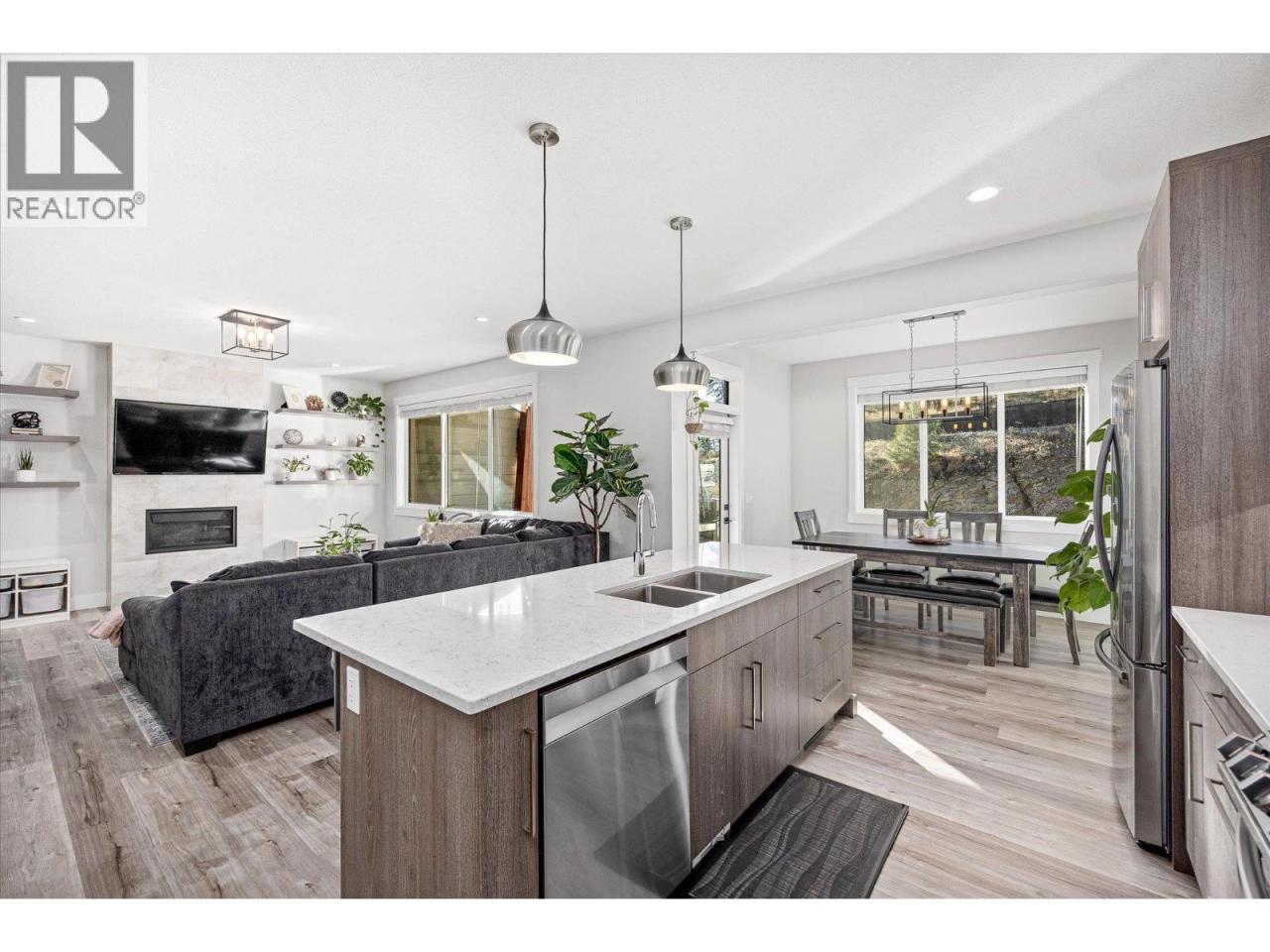 Welcome to this bright and spacious 4-bedroom townhome located in the desirable Talus Ridge community. This home features a modern, open-concept layout and is filled with premium upgrades. On the main floor you are welcomed by an inviting living area centered around an elegant tile fireplace. The kitchen flows seamlessly into the dining space which is enhanced by under-cabinet lighting and upgraded appliances - an ideal environment for hosting and enjoying family dinners. Custom stair lighting leads you between each level of the home. The upper floor includes a generously sized primary bedroom, a private sanctuary equipped with blackout power blinds and a large walk-in closet. Enter into the spa-like ensuite which features in-floor heating and a freestanding bathtub. The basement includes a bonus finished flex room great for a gym or media room. From this level, access a walk-out patio and yard for outdoor living. This is a rare opportunity to own in a sought after townhome community that has so much to offer: mountain trails to hike and bike, Shannon Lake for golf or fishing, and a short drive to all the amenities you need. **Open House - Saturday, February 21st at 2:00PM** (id:6769)
