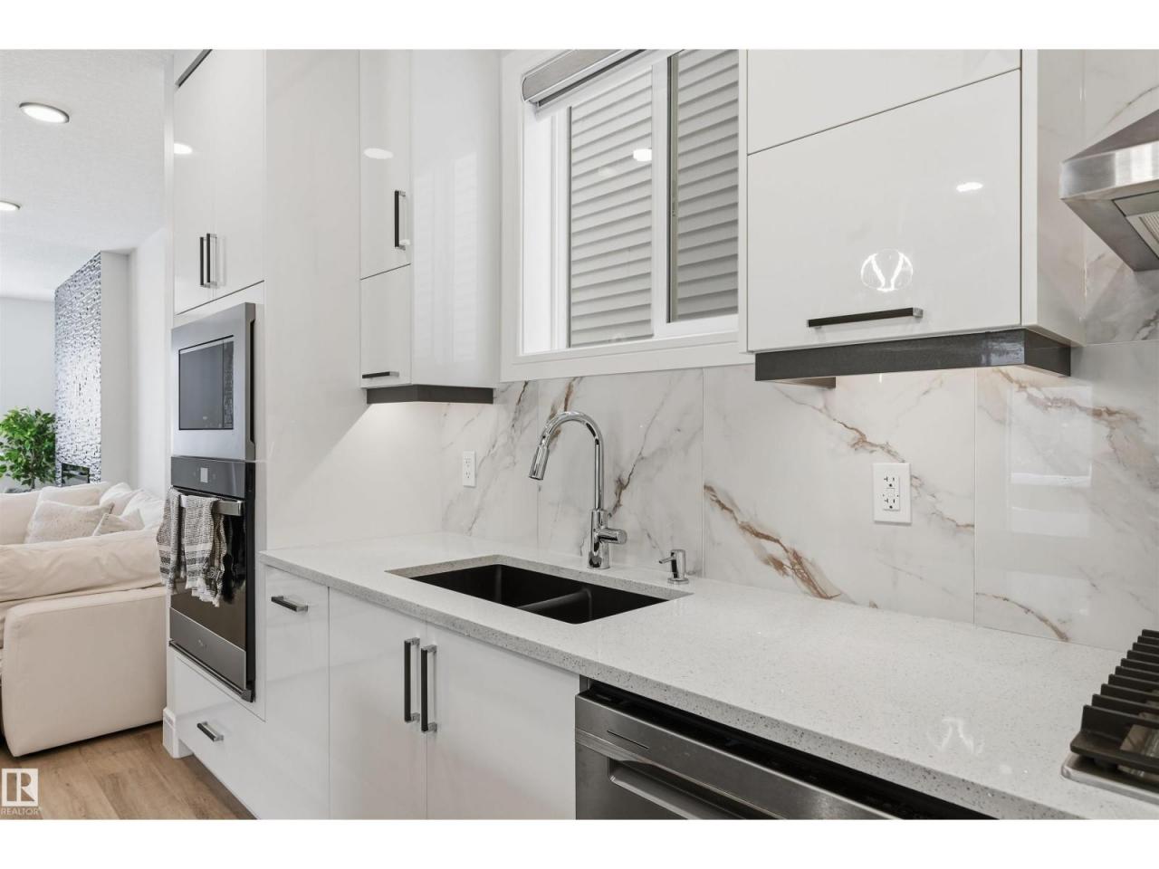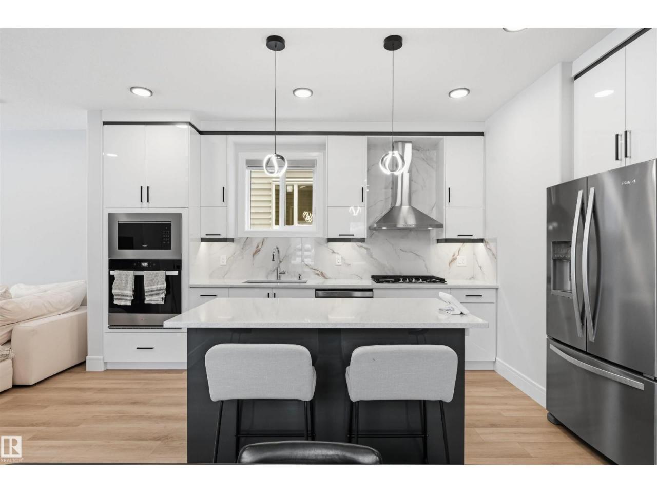 Better than NEW- turn key. Quiet street steps to the park in a mature well located neighborhood. Modern open concept plan emphasizes comfort & lifestyle. 2300 sf ttl luxury living space. Sleek Chef’s Kitchen opens to the living w/stone FP & dining area. S/S appliances incl quartz counters, gas range, wall oven & counter depth lacquer cabinetry. Quality epitomized, not your typical built 2 sty w/attention to detail & craftsmanship w/the best materials elevating this home's uniqueness. High ceilings incl 9’ upstairs. Lots of natural light w/lots of O/S windows & warm, contemporary colors. Upstairs are 3 bedrooms, 2 baths incl a luxurious ensuite. Lower level one bedroom LEGAL suite is light & bright w/a gorgeous kitchen. Perfect for students, nanny or extended family. Quality finished landscaping incl artificial turf in the front, poured sidewalks & a 23x21 drywalled/insulated garage w/full driveway. Conveniently located to WEM, Downtown & the U of A. Air conditioned. Lots of services & shopping close by (id:6769)
