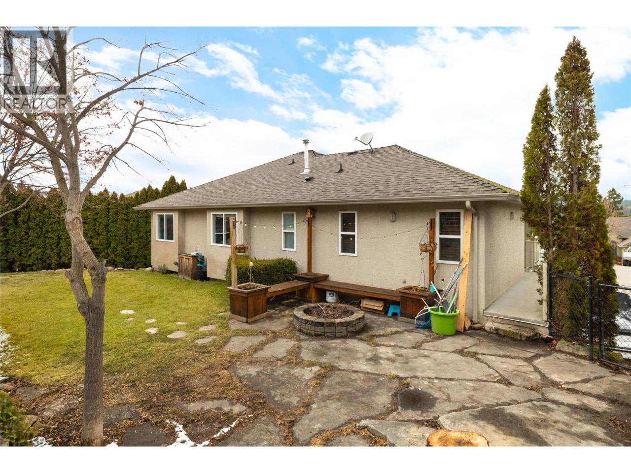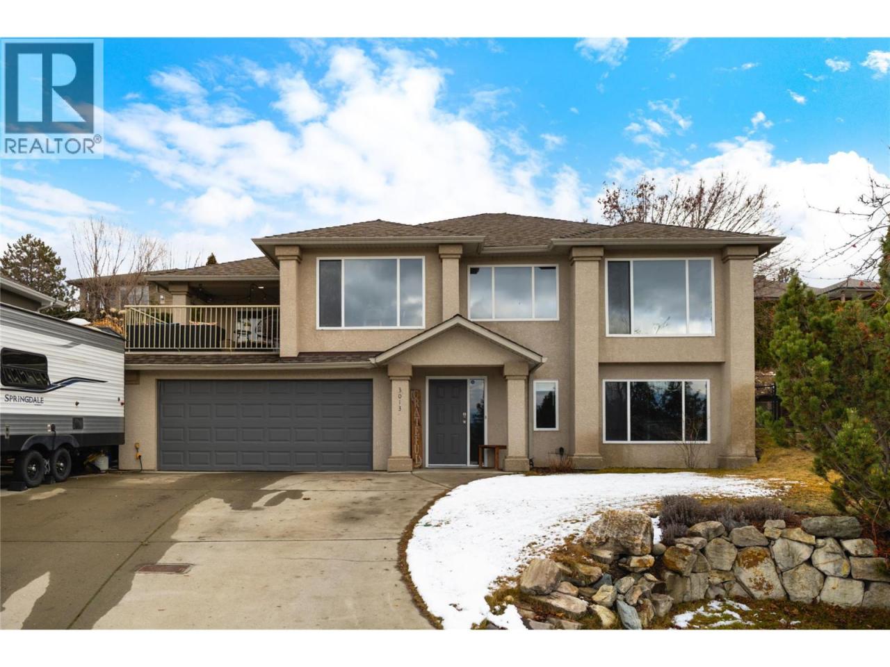 Set in a quiet, well-connected neighbourhood, this updated two-storey walk-up offers space, privacy, and a functional family layout. The upper level features vaulted ceilings and oversized new windows that create a bright, open-concept main living area. Fresh paint throughout gives the home a crisp, move-in ready feel. The kitchen is centred around a functional island with seating and storage, complemented by stainless appliances and a walk-in pantry. The adjoining living room is anchored by a stone fireplace with built-ins, while the dining area opens directly onto the covered deck—ideal for effortless indoor-outdoor living. Three bedrooms complete the upper level, including a spacious primary retreat with its own ensuite and direct access to the deck. A full bathroom serves the additional bedrooms. The lower level offers excellent flexibility with two additional bedrooms, a full bathroom, and a generous family room—perfect for movie nights, teenagers, guests, or a home office. The welcoming entry features built-in storage to keep daily life organized. Outside, the private and expansive yard features tiered landscaping, space for a future pool or play structure, and a dedicated firepit area to gather. The double garage and oversized driveway provide ample parking, including RV accommodation. With brand new air conditioning, fresh paint throughout, and a prime location close to UBCO, top golf courses and the airport, this home delivers comfort, convenience, and room to grow. (id:6769)