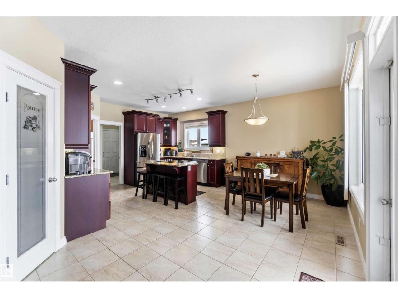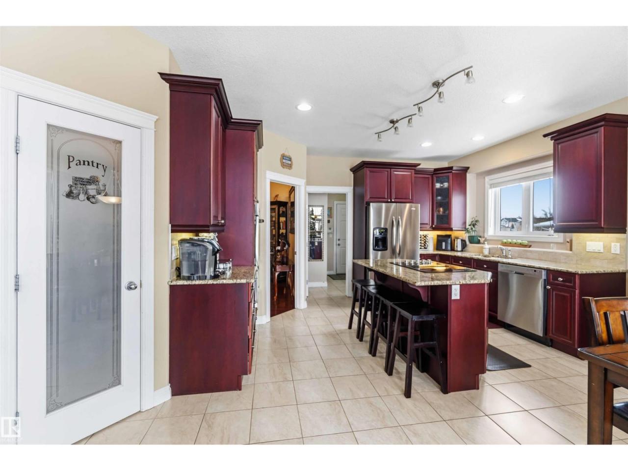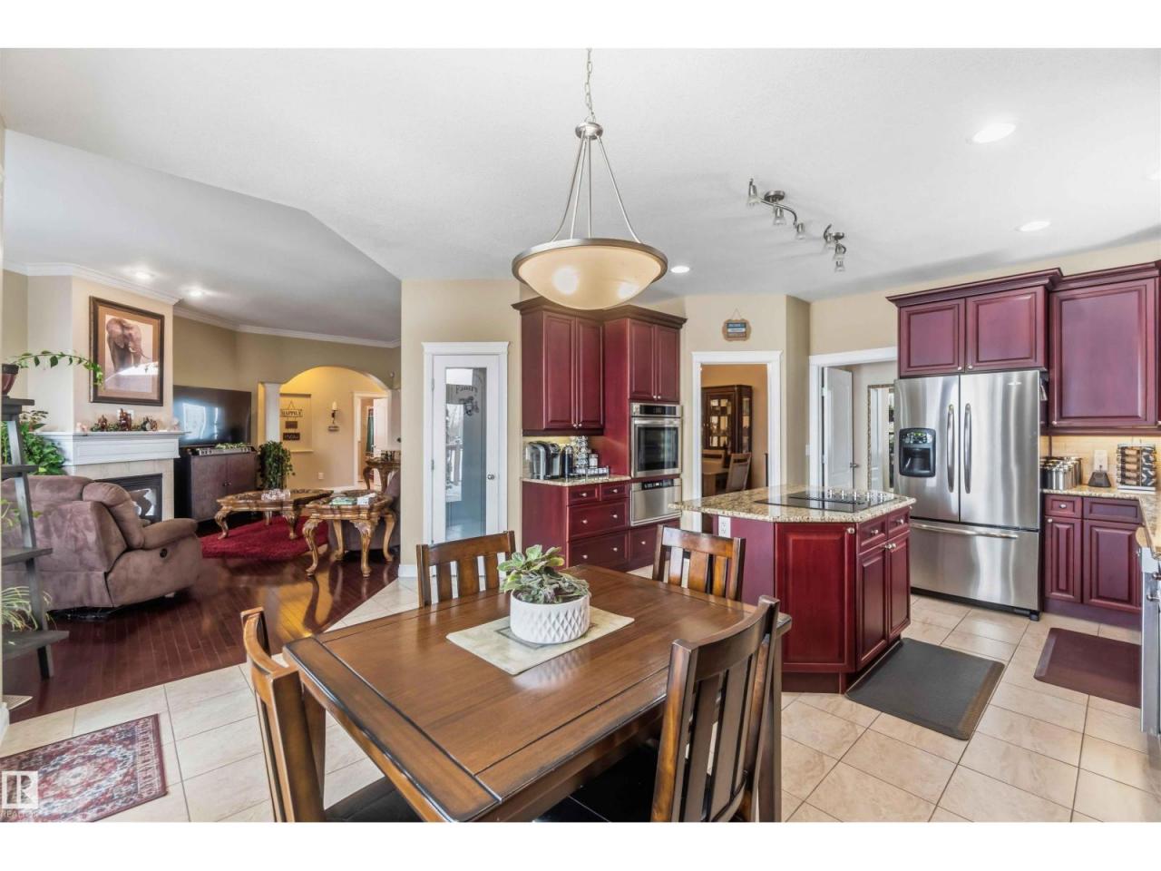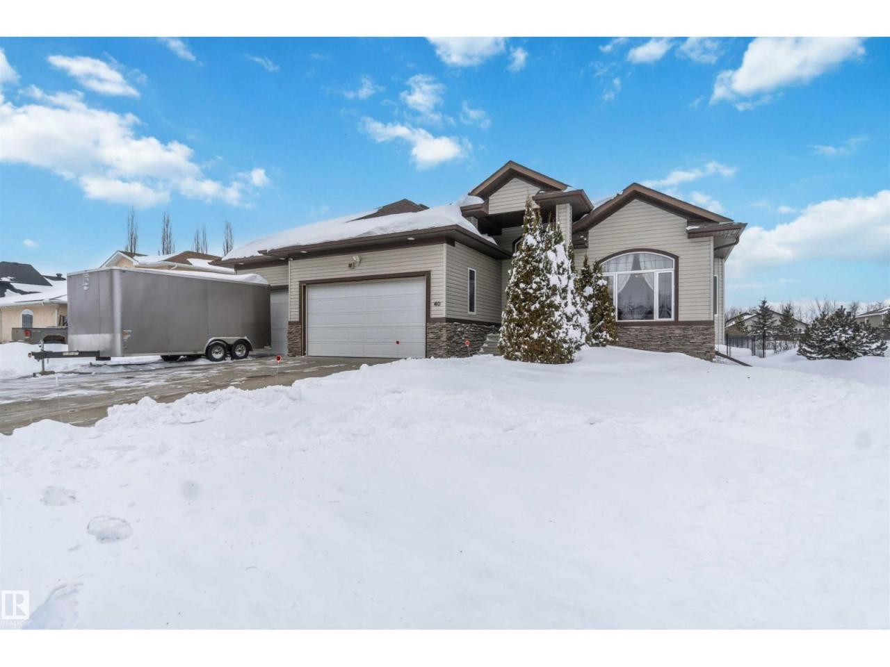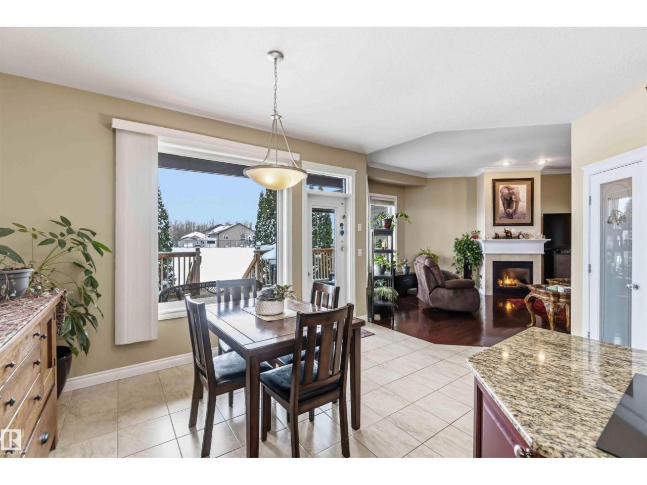 Look No Further! Welcome to 40 Landing Trails Dr in the Town of Gibbons. Stunning Bungalow on a 1/3+ acre lot with a Triple Heated Garage, large front driveway & over 2000sq ft of living space to enjoy! The main floor features 10ft ceilings, grand foyer, front den, living room with a gas FP & lots of natural light. Dining room, kitchen with cherry cabinets, granite countertops, island with an eat-up area, walk-in pantry, dining nook looking out to the private covered deck with natural gas for a bbq. The laundry room has access to the garage. 2 bedrooms, 4pc bathroom, primary bedroom with a huge walk-in closet, 4pc ensuite & soaker tub. The finished basement boats a rec room, 2 more bedrooms, 3pc bathroom & storage room. 2019 50yr Shingles, 2021 HE Furnace & HE HWT, 2022 Central AC & Radiant Furnace in garage. Garage has 8ft doors, floor drain, hot/cold taps. New iron gate allows access to the huge fenced yard, storage shed, raised garden beds & fire pit area. Impressive pride of ownership throughout!! (id:6769)