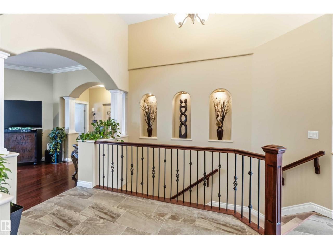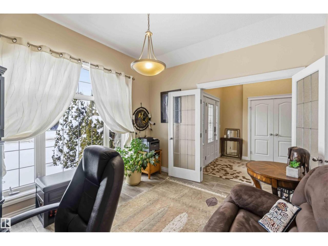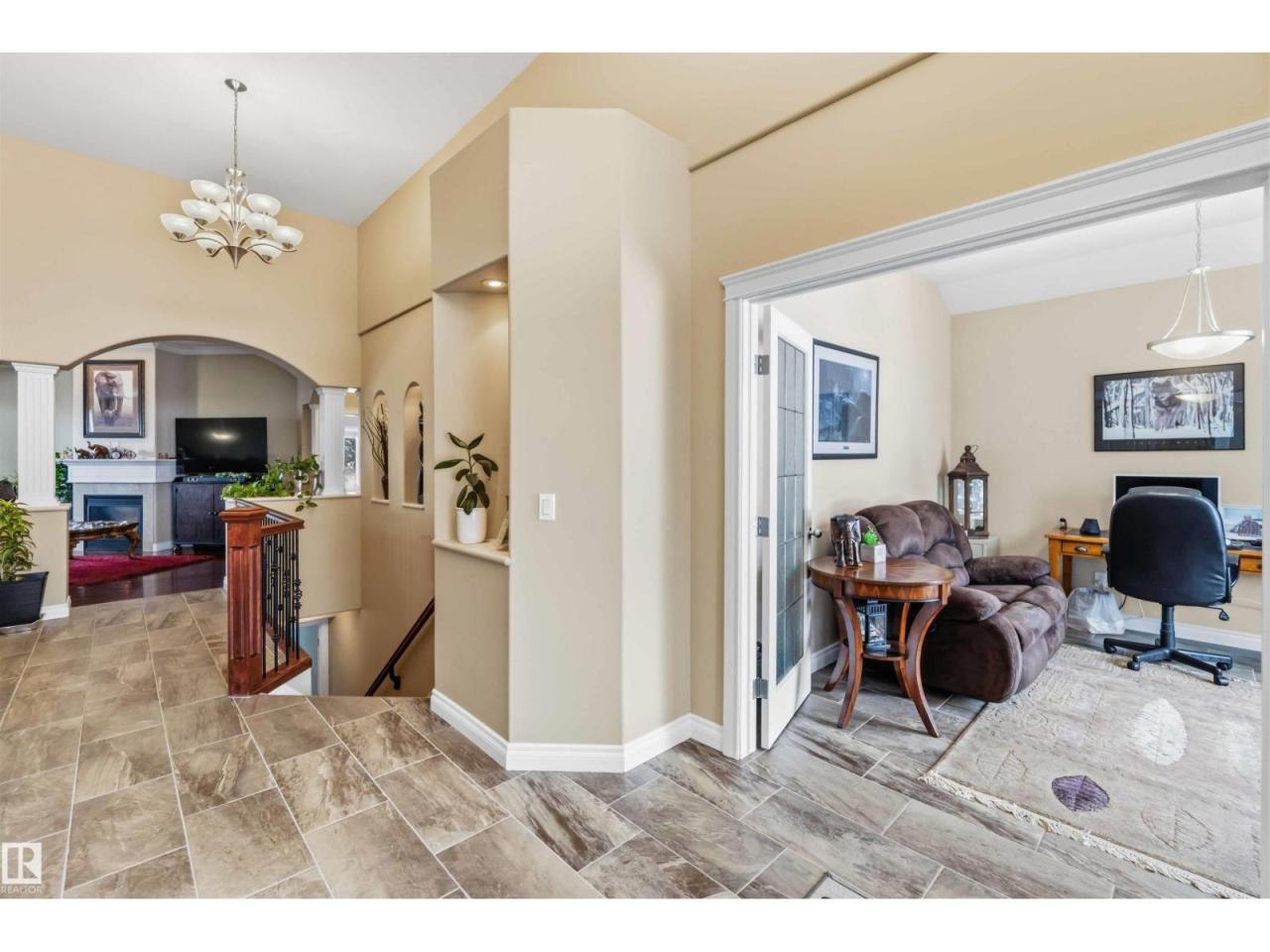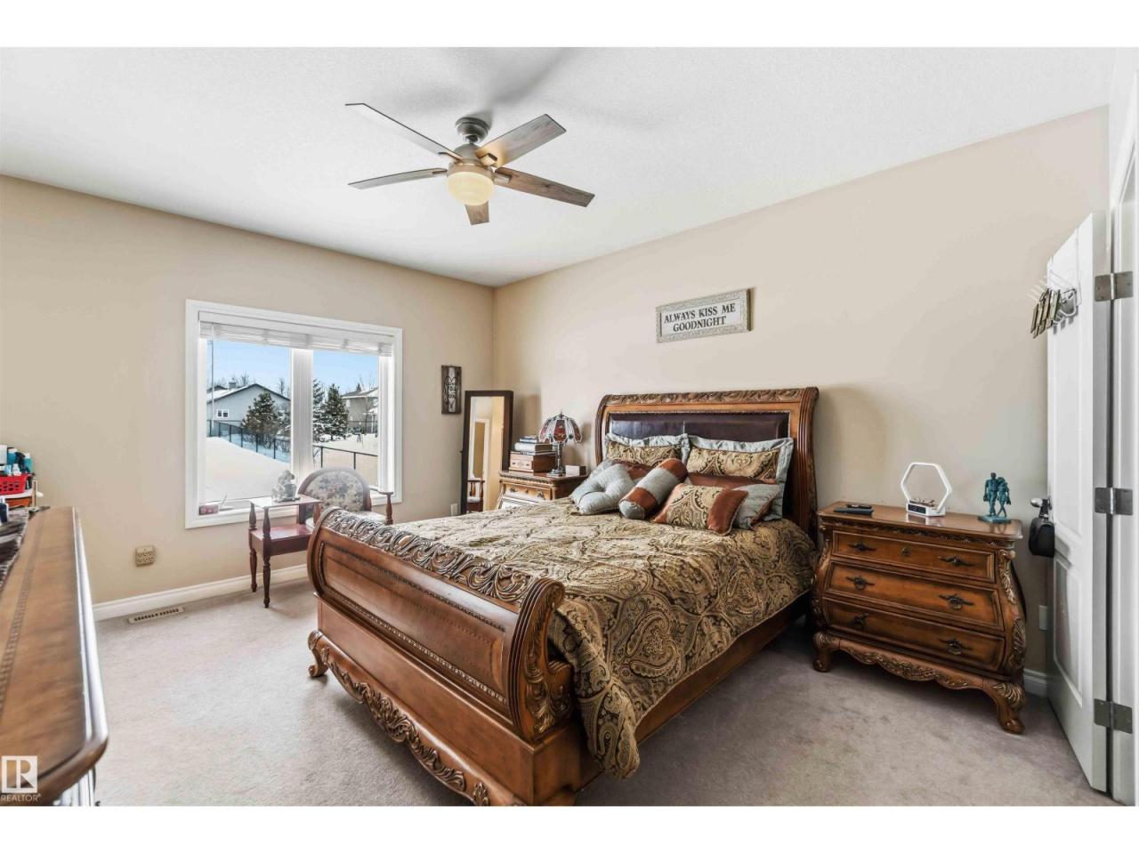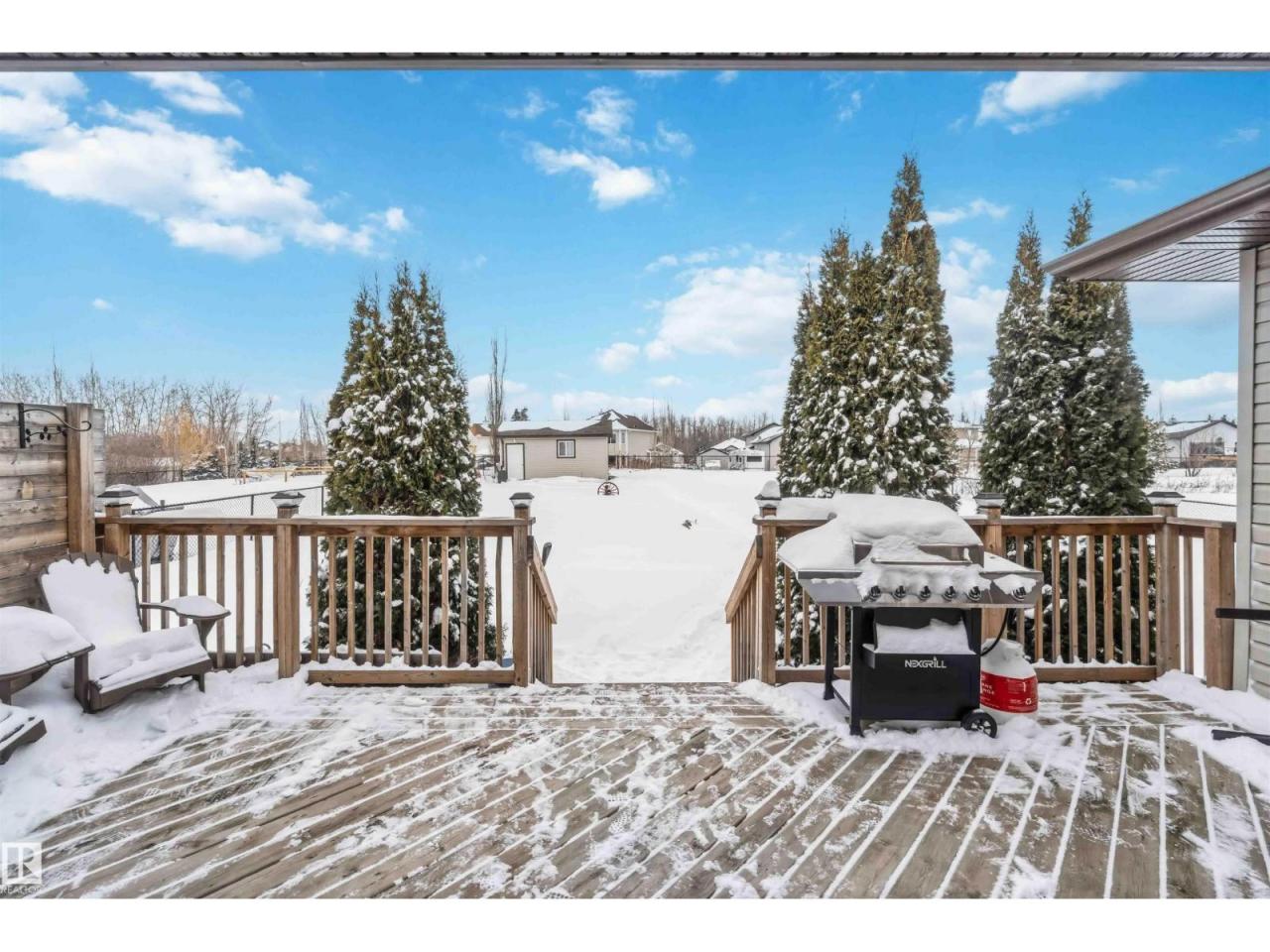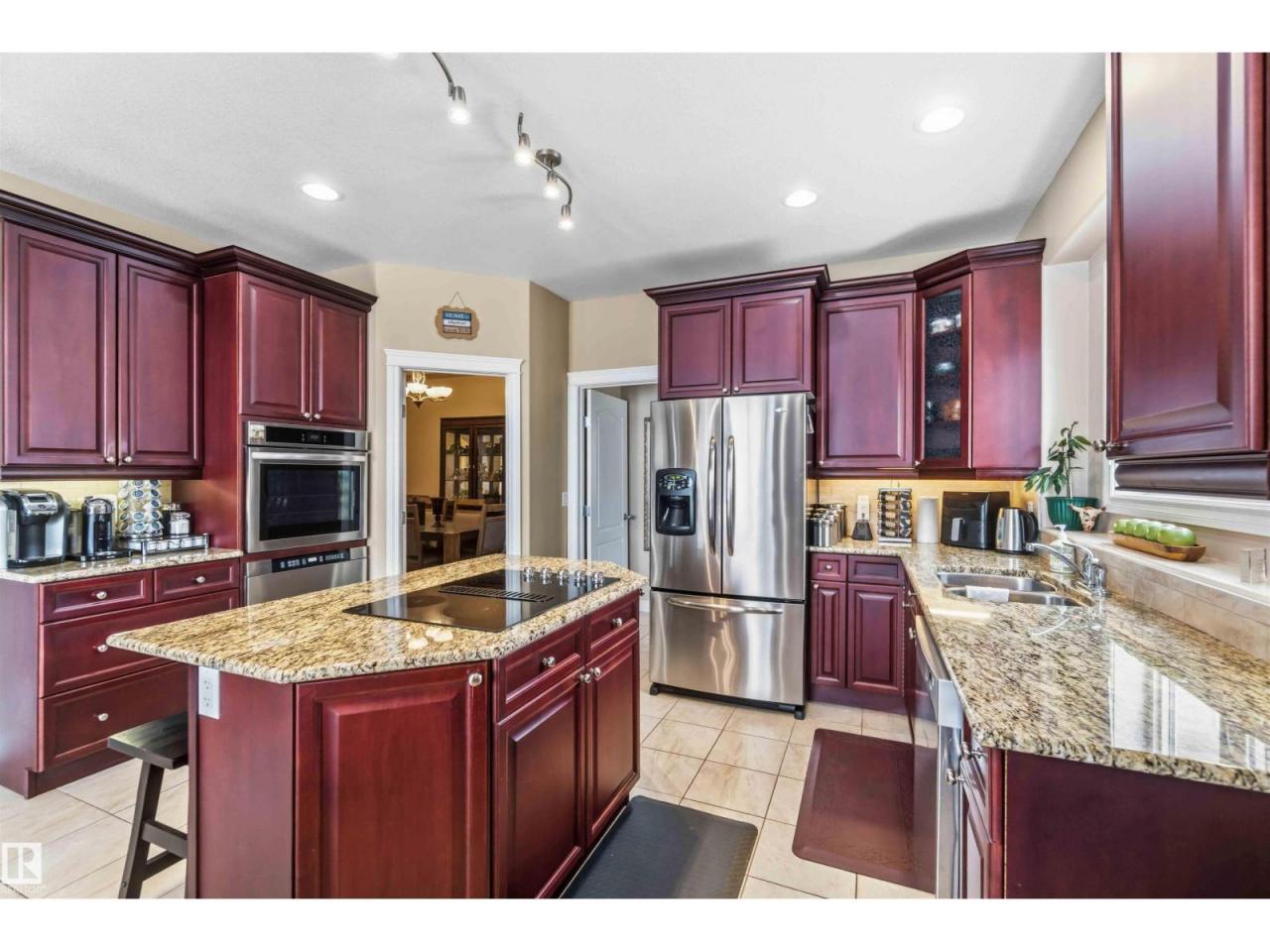 Look No Further! Welcome to 40 Landing Trails Dr in the Town of Gibbons. Stunning Bungalow on a 1/3+ acre lot with a Triple Heated Garage, large front driveway & over 2000sq ft of living space to enjoy! The main floor features 10ft ceilings, grand foyer, front den, living room with a gas FP & lots of natural light. Dining room, kitchen with cherry cabinets, granite countertops, island with an eat-up area, walk-in pantry, dining nook looking out to the private covered deck with natural gas for a bbq. The laundry room has access to the garage. 2 bedrooms, 4pc bathroom, primary bedroom with a huge walk-in closet, 4pc ensuite & soaker tub. The finished basement boats a rec room, 2 more bedrooms, 3pc bathroom & storage room. 2019 50yr Shingles, 2021 HE Furnace & HE HWT, 2022 Central AC & Radiant Furnace in garage. Garage has 8ft doors, floor drain, hot/cold taps. New iron gate allows access to the huge fenced yard, storage shed, raised garden beds & fire pit area. Impressive pride of ownership throughout!! (id:6769)