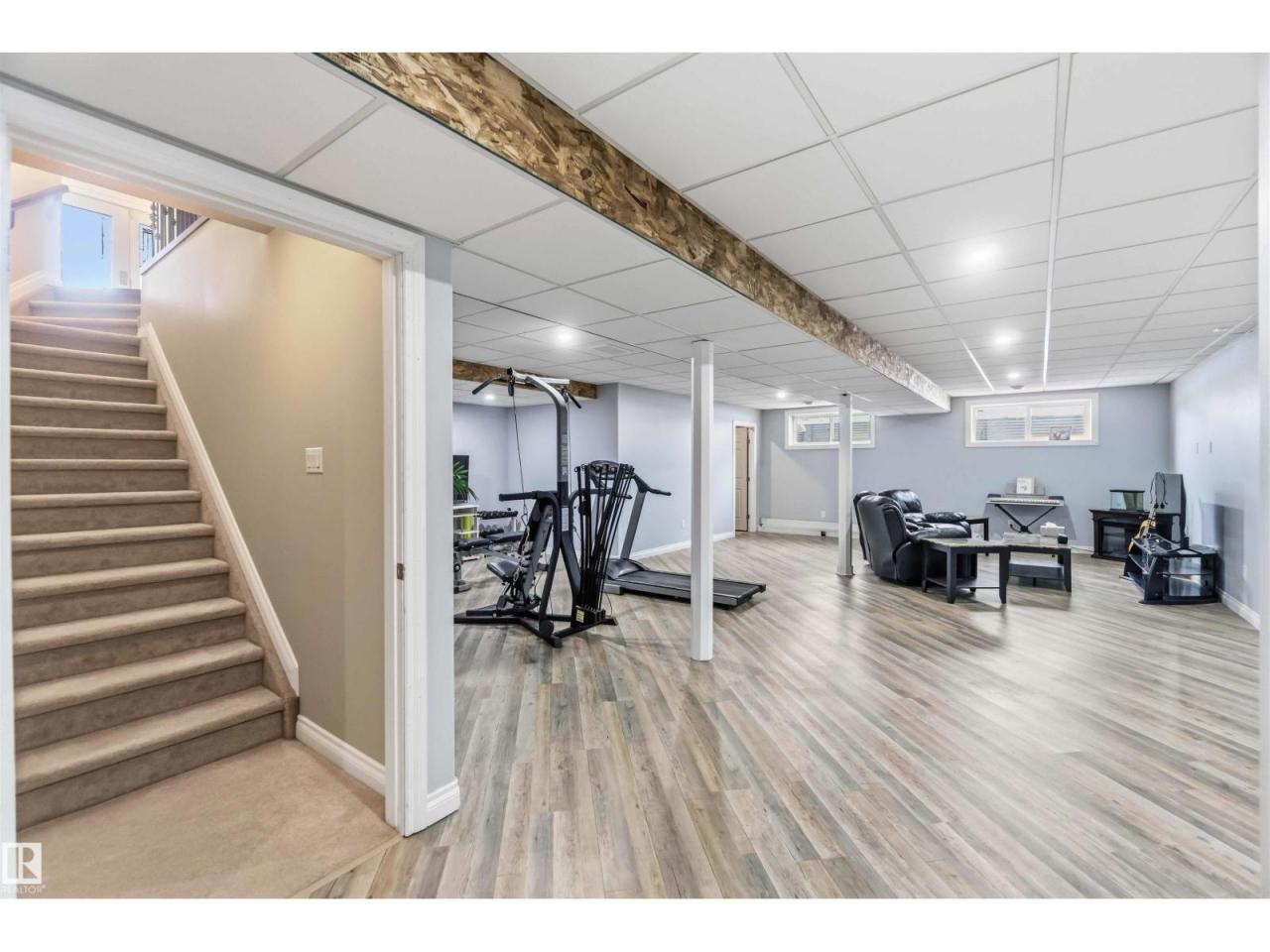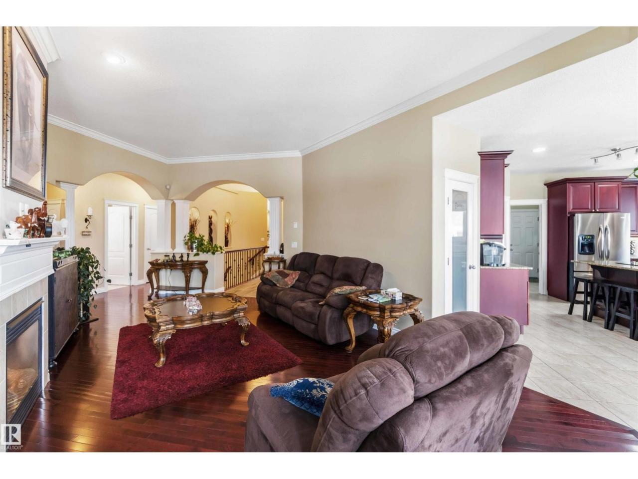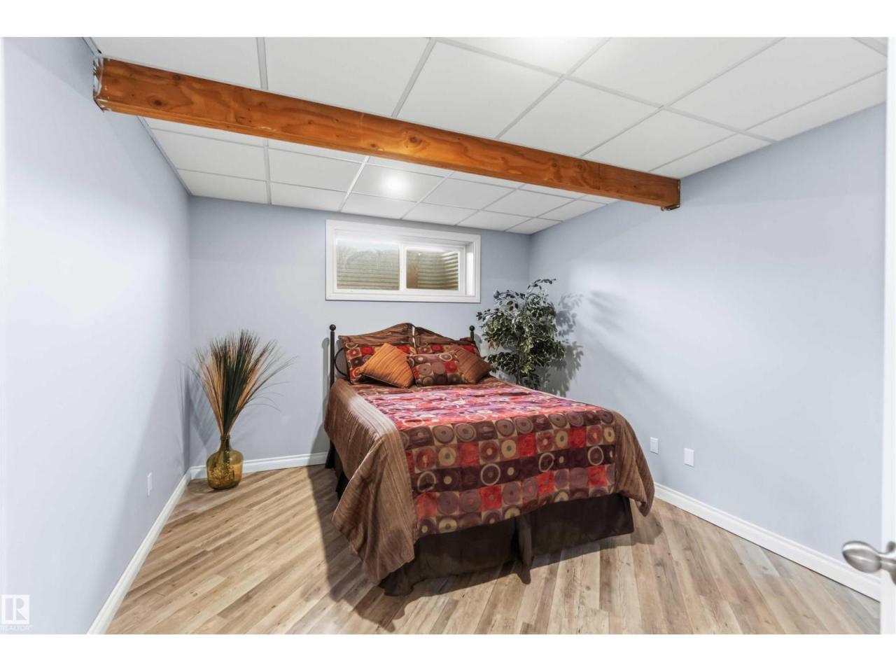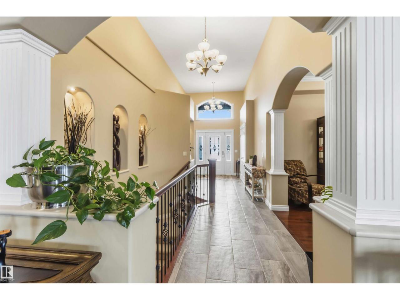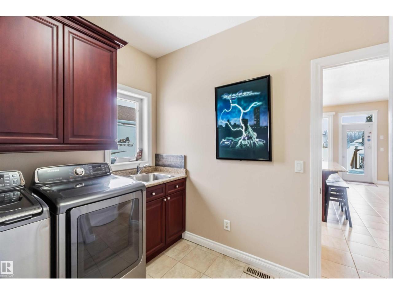 Look No Further! Welcome to 40 Landing Trails Dr in the Town of Gibbons. Stunning Bungalow on a 1/3+ acre lot with a Triple Heated Garage, large front driveway & over 2000sq ft of living space to enjoy! The main floor features 10ft ceilings, grand foyer, front den, living room with a gas FP & lots of natural light. Dining room, kitchen with cherry cabinets, granite countertops, island with an eat-up area, walk-in pantry, dining nook looking out to the private covered deck with natural gas for a bbq. The laundry room has access to the garage. 2 bedrooms, 4pc bathroom, primary bedroom with a huge walk-in closet, 4pc ensuite & soaker tub. The finished basement boats a rec room, 2 more bedrooms, 3pc bathroom & storage room. 2019 50yr Shingles, 2021 HE Furnace & HE HWT, 2022 Central AC & Radiant Furnace in garage. Garage has 8ft doors, floor drain, hot/cold taps. New iron gate allows access to the huge fenced yard, storage shed, raised garden beds & fire pit area. Impressive pride of ownership throughout!! (id:6769)