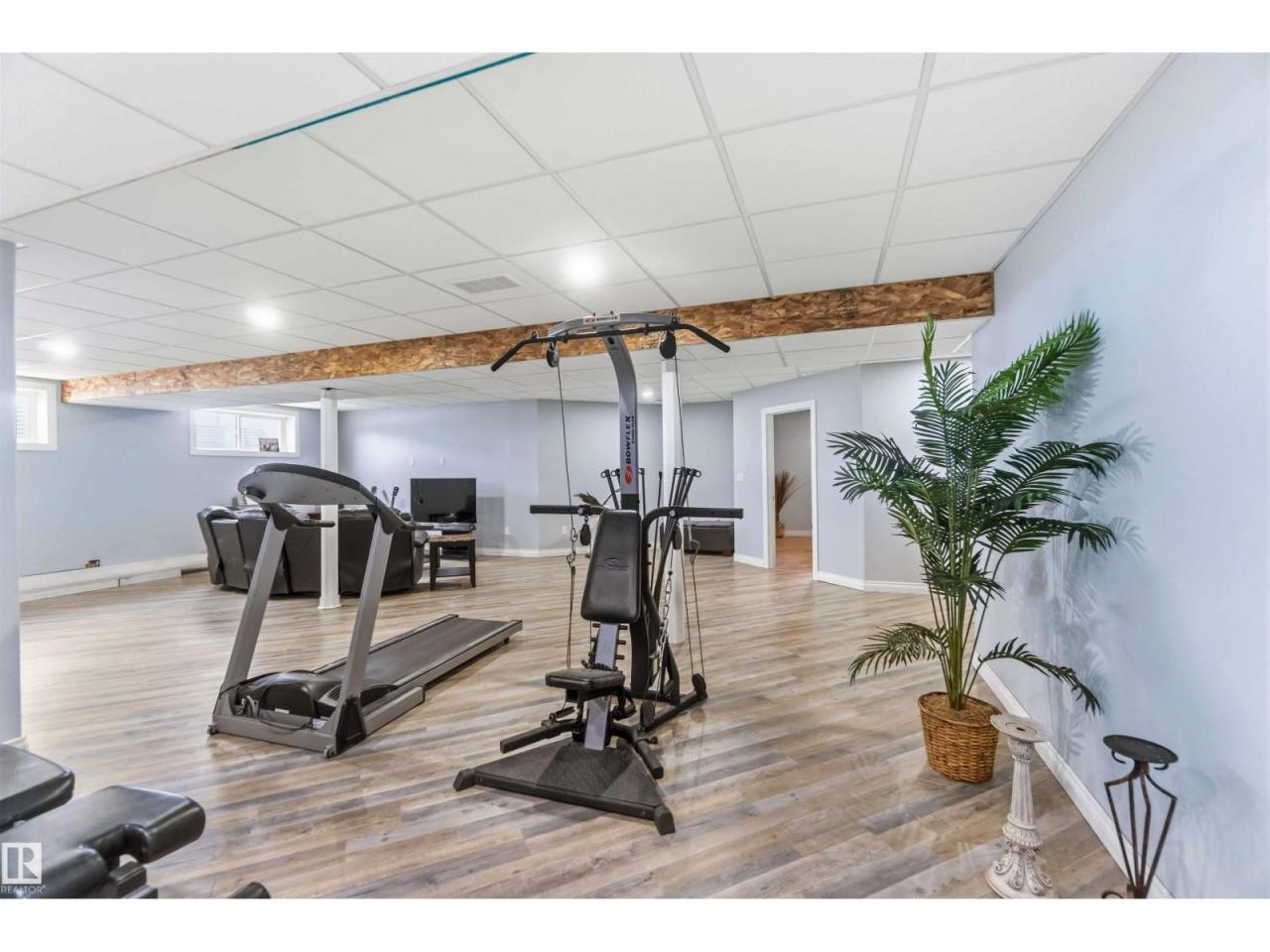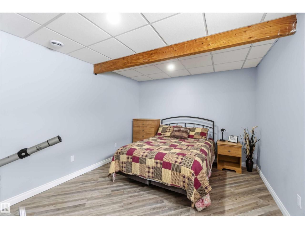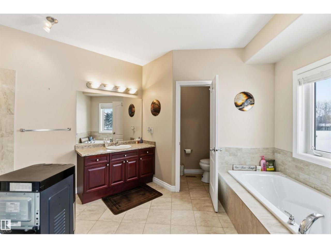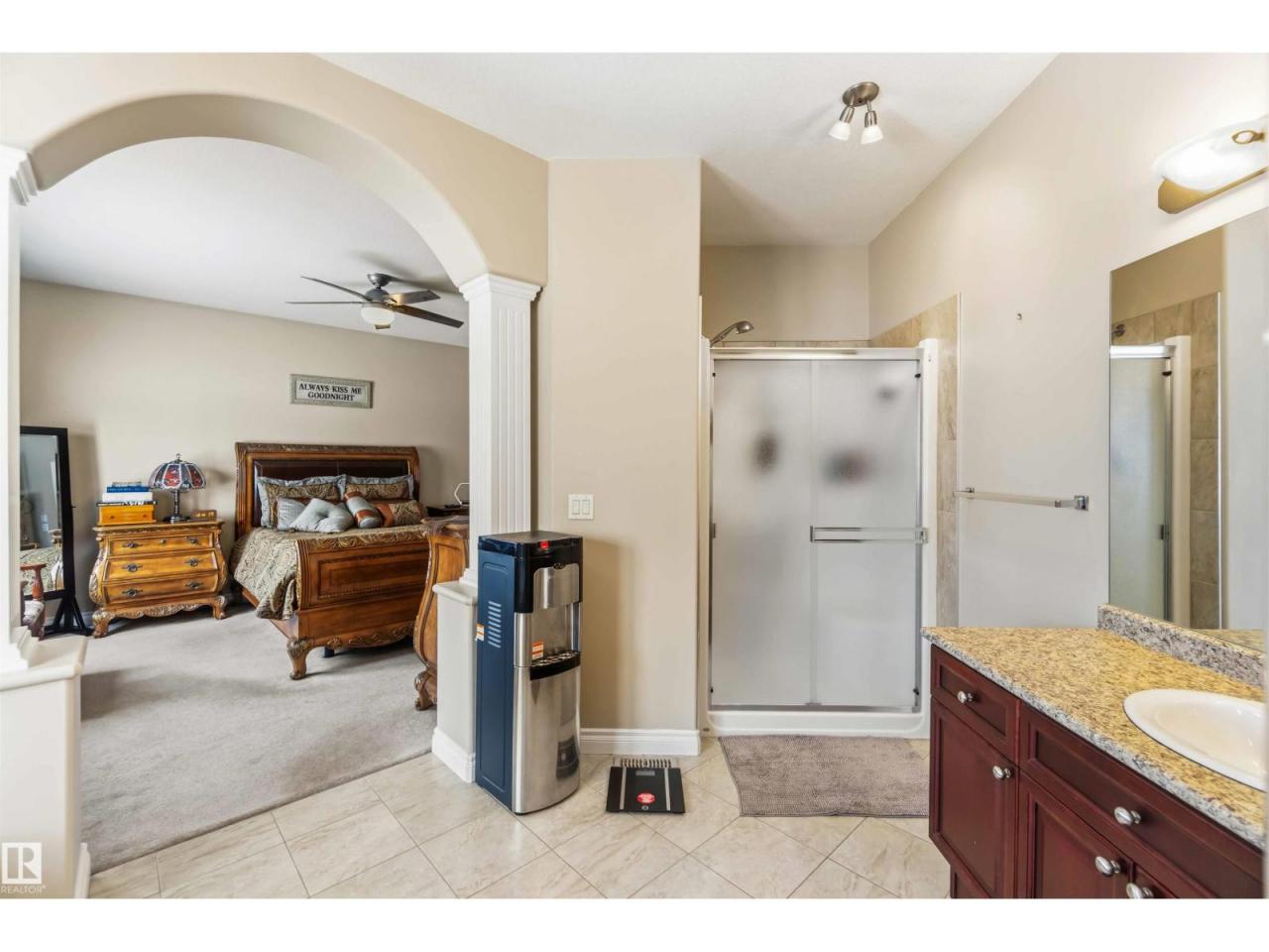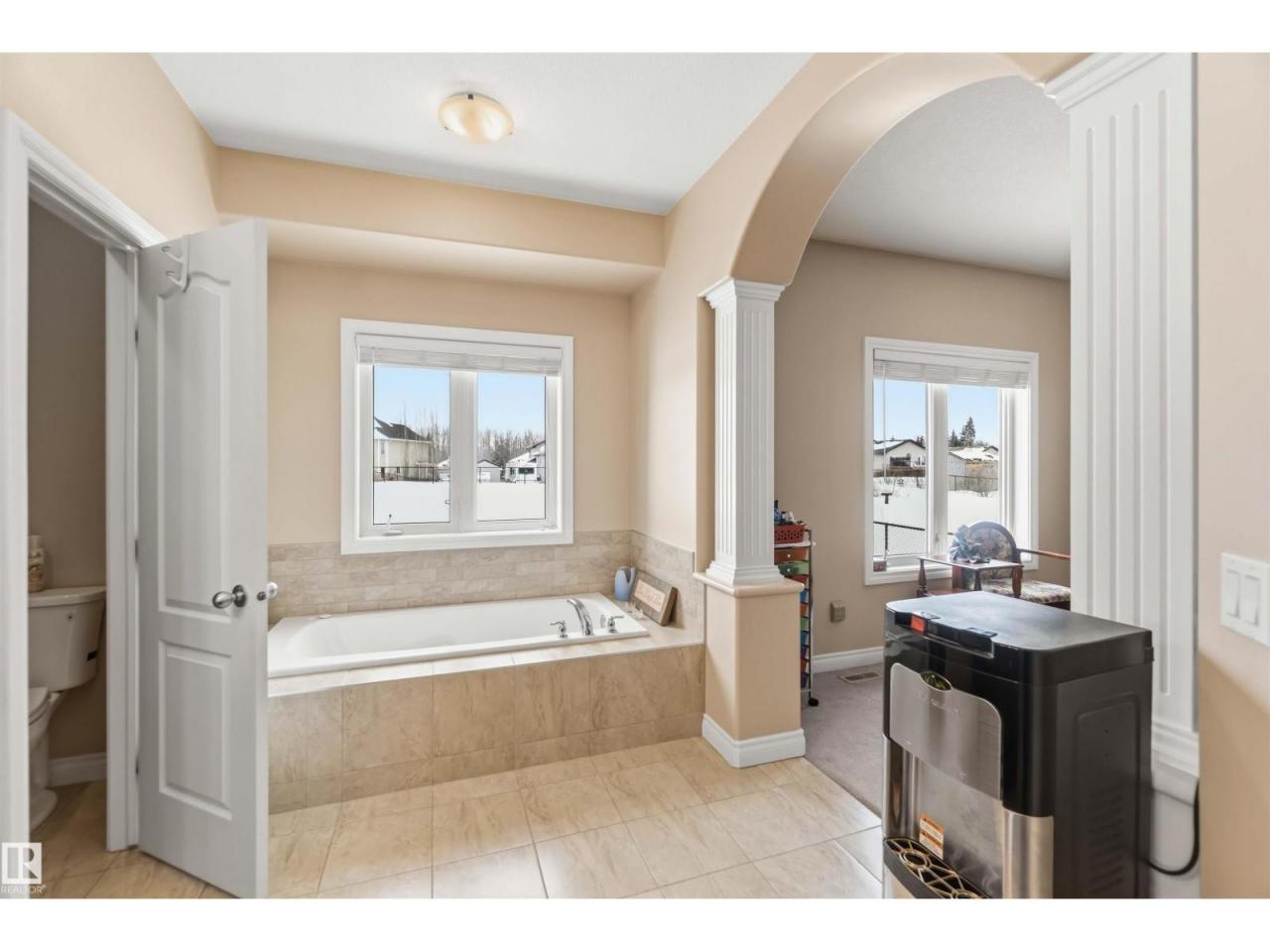 Look No Further! Welcome to 40 Landing Trails Dr in the Town of Gibbons. Stunning Bungalow on a 1/3+ acre lot with a Triple Heated Garage, large front driveway & over 2000sq ft of living space to enjoy! The main floor features 10ft ceilings, grand foyer, front den, living room with a gas FP & lots of natural light. Dining room, kitchen with cherry cabinets, granite countertops, island with an eat-up area, walk-in pantry, dining nook looking out to the private covered deck with natural gas for a bbq. The laundry room has access to the garage. 2 bedrooms, 4pc bathroom, primary bedroom with a huge walk-in closet, 4pc ensuite & soaker tub. The finished basement boats a rec room, 2 more bedrooms, 3pc bathroom & storage room. 2019 50yr Shingles, 2021 HE Furnace & HE HWT, 2022 Central AC & Radiant Furnace in garage. Garage has 8ft doors, floor drain, hot/cold taps. New iron gate allows access to the huge fenced yard, storage shed, raised garden beds & fire pit area. Impressive pride of ownership throughout!! (id:6769)