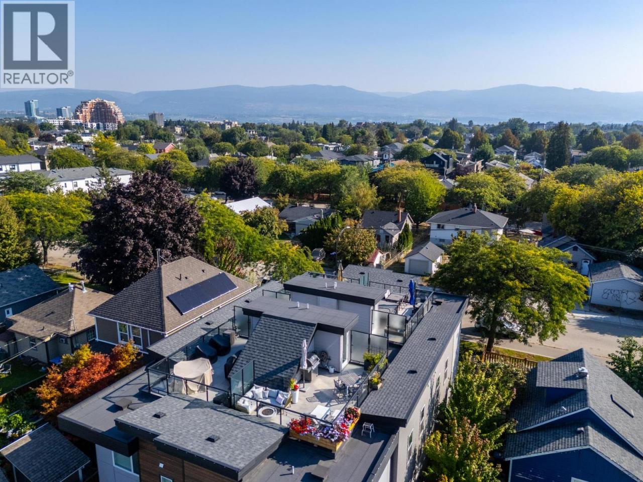 Downtown luxury with a rooftop oasis! This 3 bed, 3 bath modern townhouse offers the ultimate Kelowna lifestyle. Enjoy a West-facing rooftop patio which showcases panoramic city and mountain views, perfectly positioned for stunning sunsets - and engineered for a hot tub. An oversized private yard with fruit trees and a raised garden provide a natural retreat that is a rarity to find in Townhome living. Inside, the bright and open layout highlights sleek quartz countertops, stainless steel appliances, and a custom installed coffee/bar with beverage fridge. Additional interior customizations include: pull-out garbage and recycling, floating shelves, as well as convenient pull-out drawers in both the pantry and ensuite vanity. The large primary bedroom has a walk-in closet & spa-inspired ensuite with a glass/tile shower and automatic vanity underglow lighting. exterior features include a custom cedar planter framing the rooftop railing, and a secure garage with a built-in shelf for added storage. This prime location puts you on the coveted Cawston Avenue multi-use corridor—just steps to the waterfront, cultural district, shops, and dining. Modern design, seamless upgrades, and excellent views make this downtown gem truly one of a kind! (id:6769)