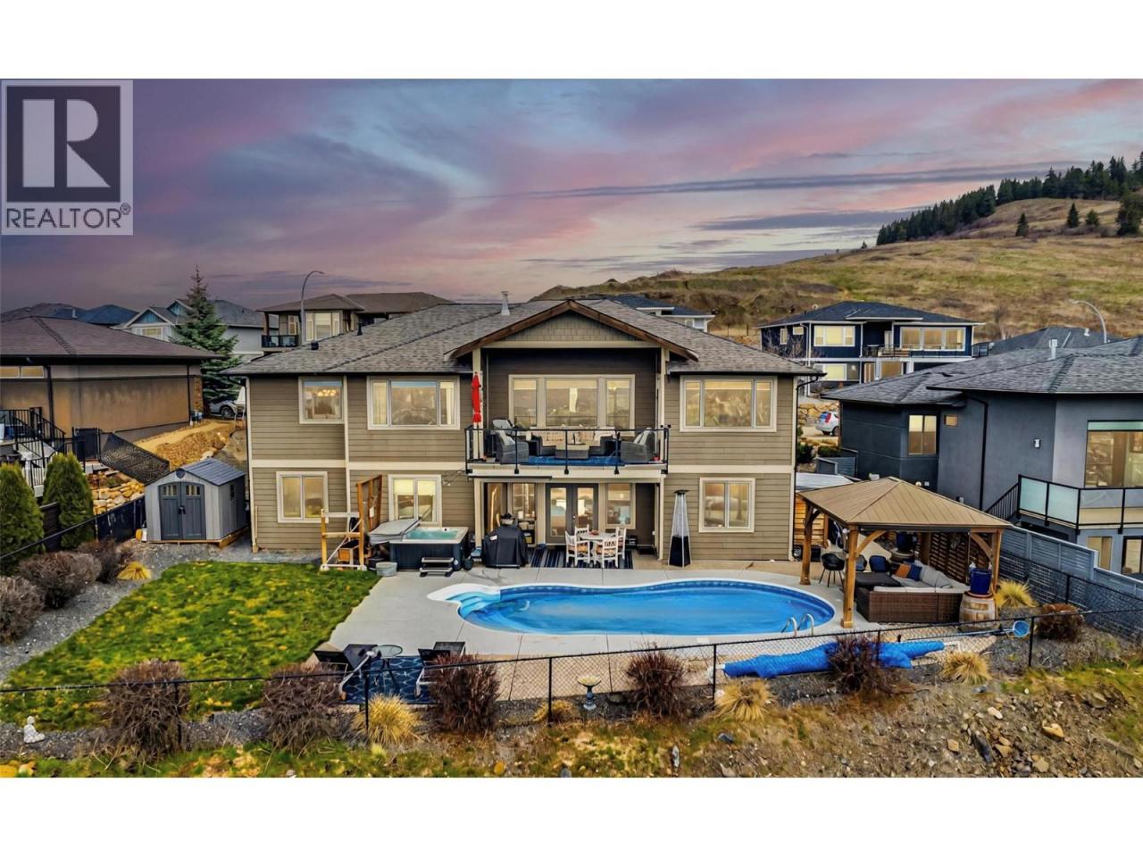 Stunning Home with Breathtaking Views & Exceptional Outdoor Living. Experience panoramic city, mountain, and lake views from this 5-bedroom, 3-bathroom rancher with a walkout basement in the highly sought-after Foothills neighbourhood. Designed for comfort and entertaining, this home offers the perfect blend of luxury, space, and lifestyle. Step outside to your private backyard retreat with a large pool, hot tub, and impressive gazebo with custom solar shade— ideal for summer gatherings. A dedicated home gym overlooking the pool creates an inspiring workout space. Inside, the open-concept main floor showcases the stunning views. The spacious kitchen features a large island for hosting, while the dining area includes custom cabinetry for added style and function. The primary suite offers an updated ensuite with soaker tub, walk-in shower, and walk-in closet. A second bedroom, full bath, and laundry room with garage access complete the main level. The walkout basement includes two large bedrooms, theatre room, wine room, gym, storage, and workshop. The lower level bar area offers a variety of options- in-law suite, entertainment games room or prep space for backyard hosting. It could be ideal for guests, extended family or short-term rental potential. Updates include hot water on demand, pool furnace, pool liner, salt cell, and pump, plus winter and summer pool covers. RV parking, newer storage shed. New pathway one one side of house for accessibility to yard, Stairs on other. (id:6769)