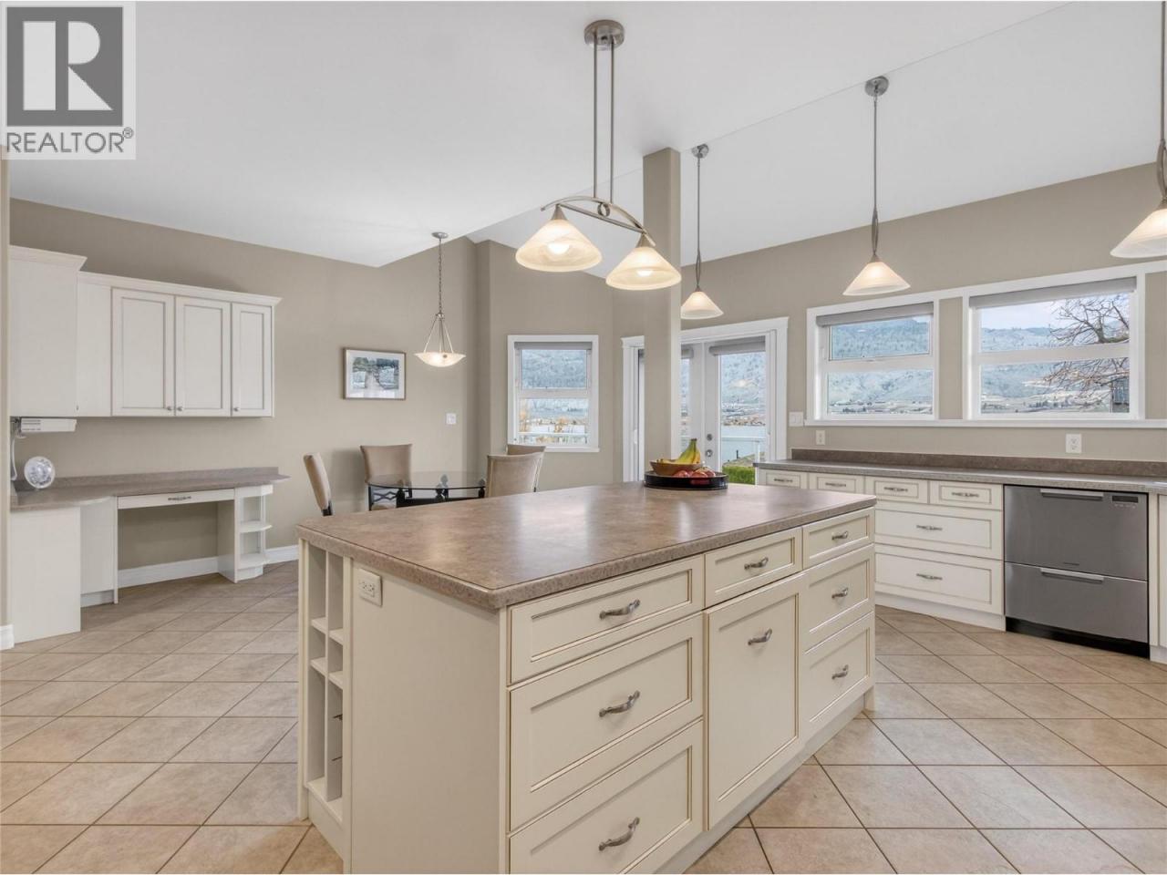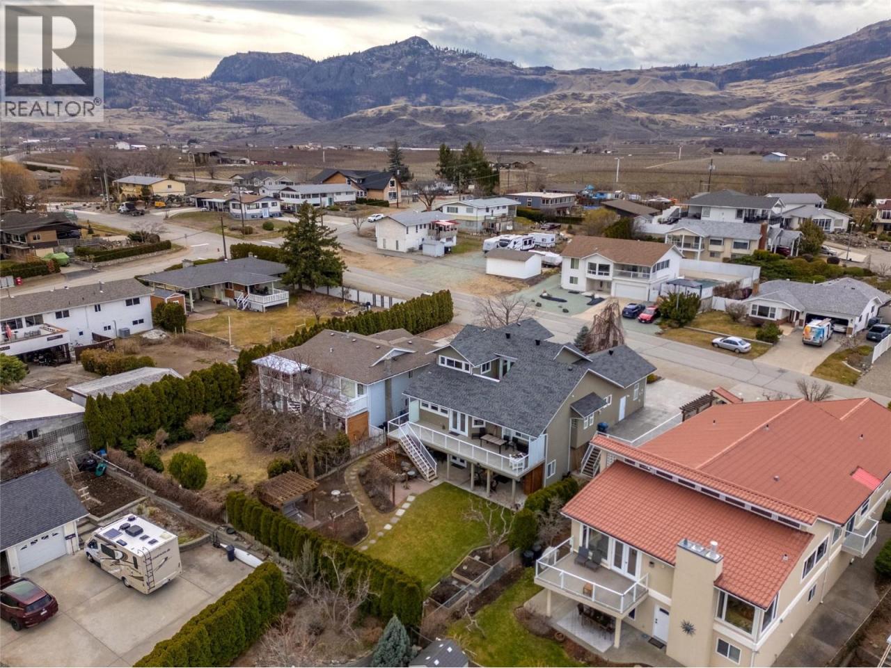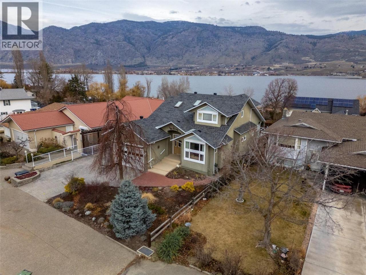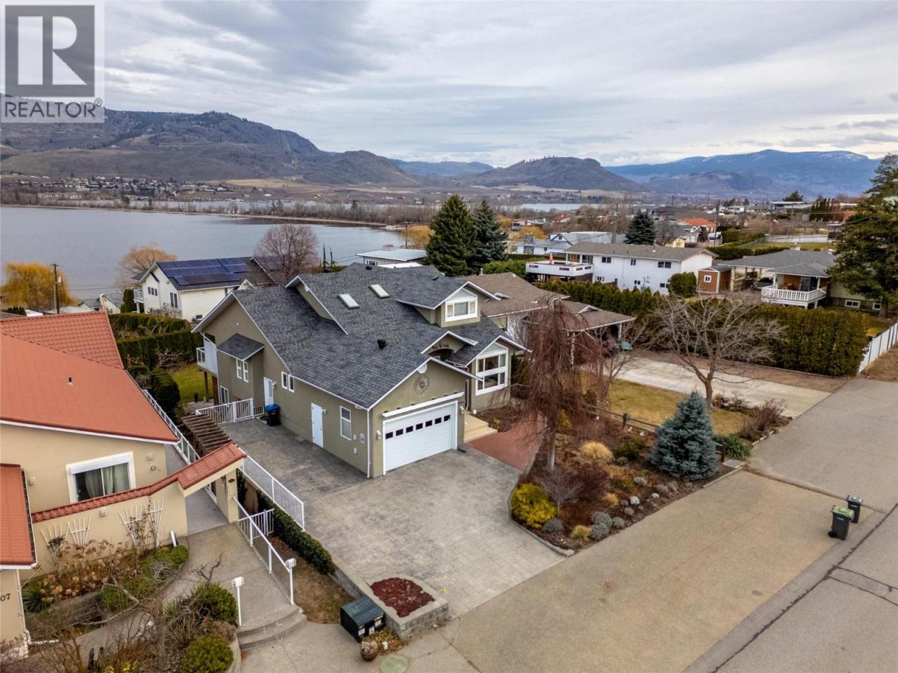 Here it is the Okanagan dream, a family sized home with gorgeous lake views situated in idyllic Osoyoos! Live close to beaches, parks and world class wineries in the area most people only get to vacation in! As you enter the foyer of this meticulous home, the space and quality is evident throughout. The main floor features a separate secondary living room and dining room at the front of the house, perfect for cozy get togethers and with laminate floors and a feature fireplace. On the lakeview side of the home is the great room style kitchen, living and dining room, the ideal place for big family gatherings and daily life. The beautiful creamy white kitchen has stunning views, a spacious kitchen island with room for stools, a perfect open plan into the family room and dining areas, and access out onto the massive front deck where you can enjoy the summer sun and take in the views. The practical layout also features a main floor primary bedroom with its own ensuite and walk in closet, while upstairs is perfect for kids or guests with two more spacious bedrooms, a shared 3 piece bathroom, a separate family room, and a deck! Downstairs in the walk out basement is a huge rec room, a wet bar, bonus space perfect for the pool table, another bathroom, plus tons of storage room and the utilities. The lower patio walks out to the beautifully landscaped and private backyard. The home has had lots of updates like the roof in 2020, furnace & HWT in 2024, reverse osmosis 2025 and more. (id:6769)