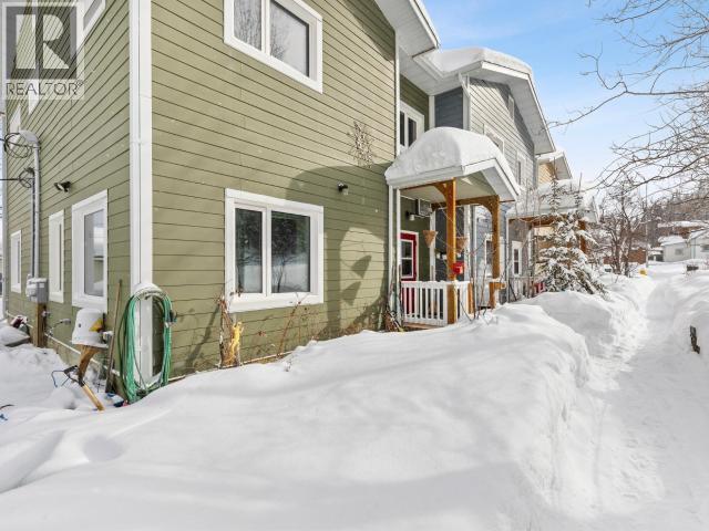 Discover this super-green downtown townhouse featuring three generously sized bedrooms and one and a half baths. The main floor is graced with nine-foot ceilings, natural light and views of Cook Street Park and the clay cliffs that comprise the front yard of this tucked away downtown haven. Upstairs comprises three generous, whimsical bedrooms and an attractive tiled bathroom. Washer, dryer and fridge are under two years old. This super solid build "for the North" has exceptional insulation--R56 in the walls and R80 in the ceiling plus quadruple-glazed, argon-filled, low-e windows for maximum energy efficiency. Electric heat and lighting costs average only $318 per month. Condo fees are just over $300, with $100 allocated to the reserve fund. Ideally located on a greenbelt with hiking and biking trails right outside your door, this home is within walking distance of schools and shopping, offering the very best of downtown living. Don't let this one get away. (id:6769)