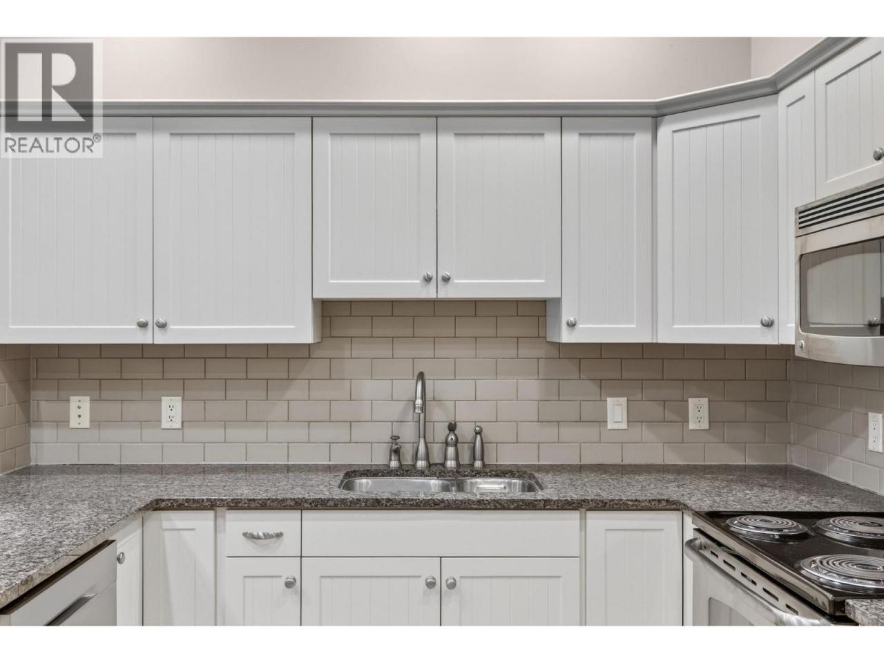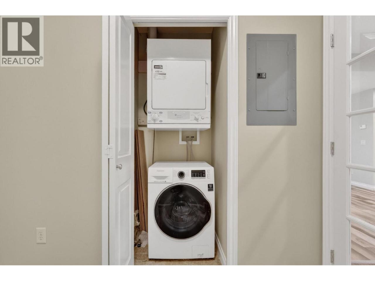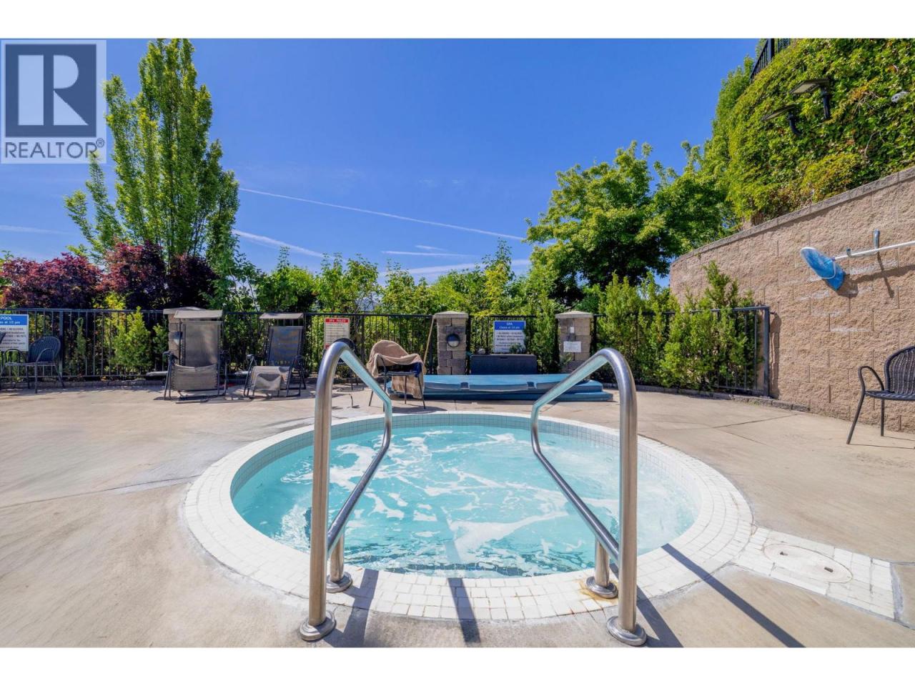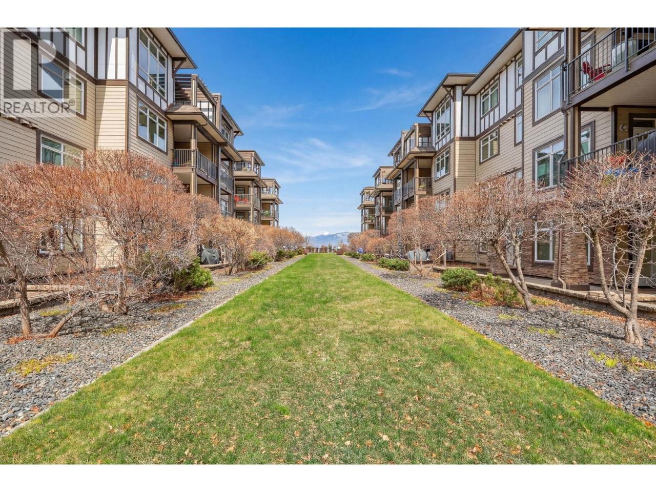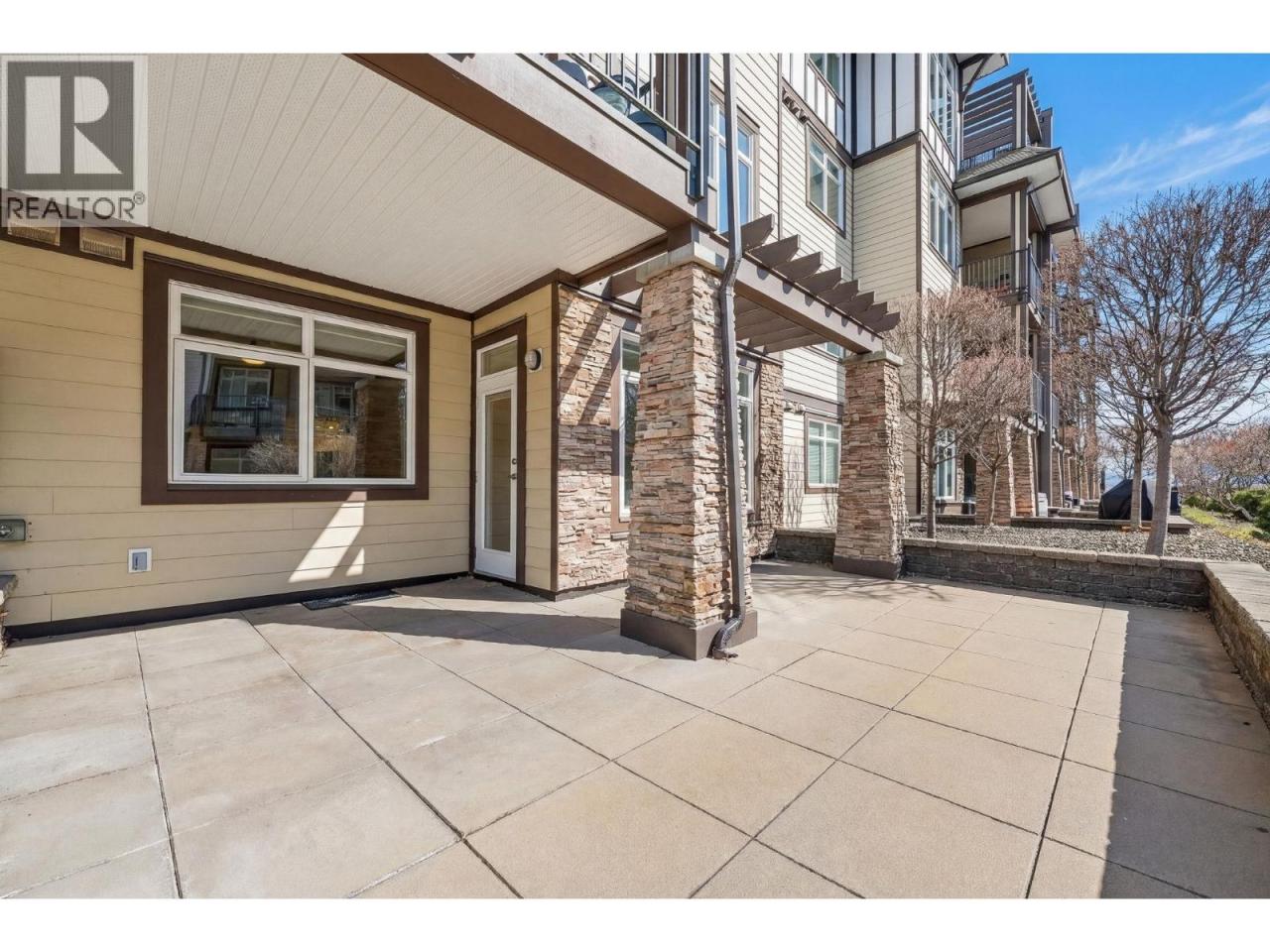 Welcome to this stunning modern ground-floor condo offering an exceptional indoor-outdoor lifestyle. The open-concept kitchen flows into the living room with walk-out access to an expansive, beautifully landscaped covered patio. Bright and airy, the home offers two spacious bedrooms plus a versatile den, white shaker cabinetry, granite counters, stainless appliances, new laminate and bedroom carpet, and a large primary suite with walk-in closet. Recent updates include furnace (2024), washer (2021) and dishwasher (2022). Plus the main building just completed renovations including new carpet and paint. Enjoy level access to resort-style amenities, a seasonal pool, year-round hot tub, games room and lounge, secure underground parking, wheelchair power door access, and strata-approved EV charger option. Steps to trails to Gellatly and Okanagan Lake and close to shops, dining, transit and community amenities. Rentals and one dog or one cat (up to 18"" shoulder) allowed. (id:6769)