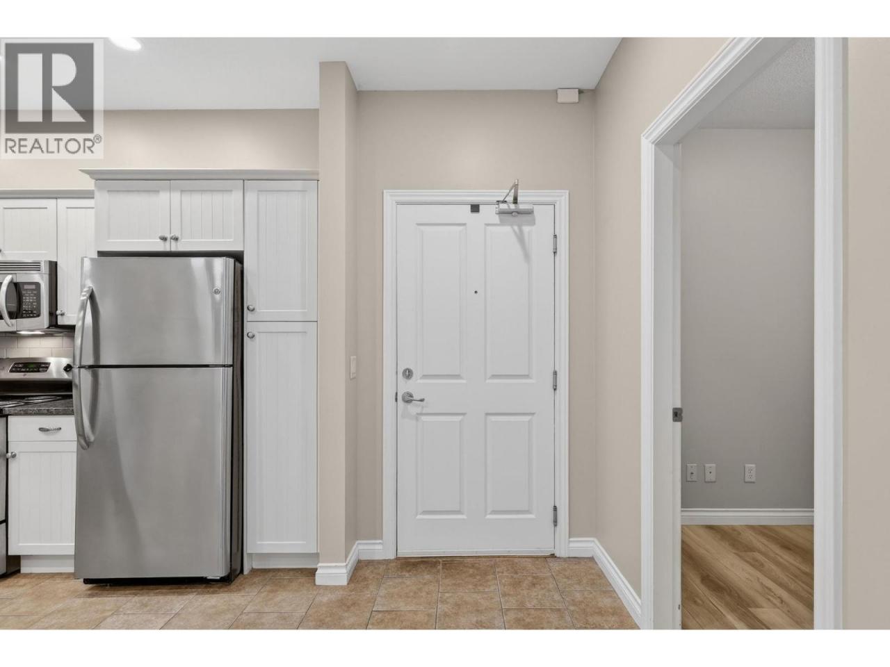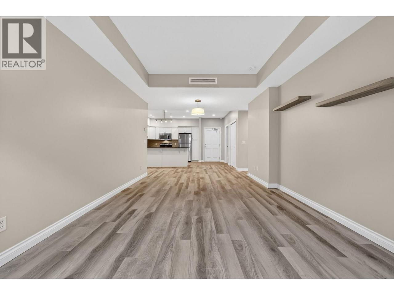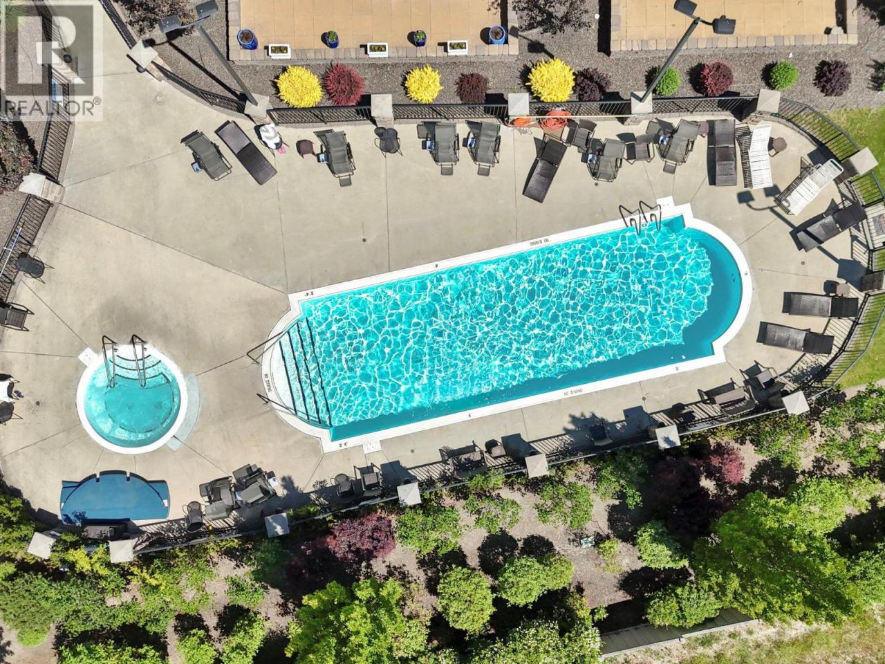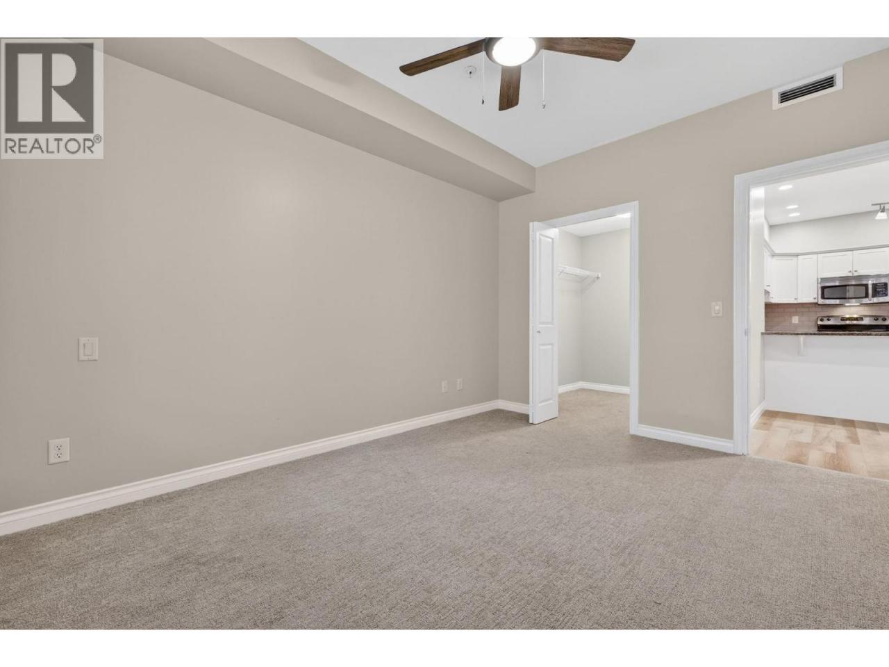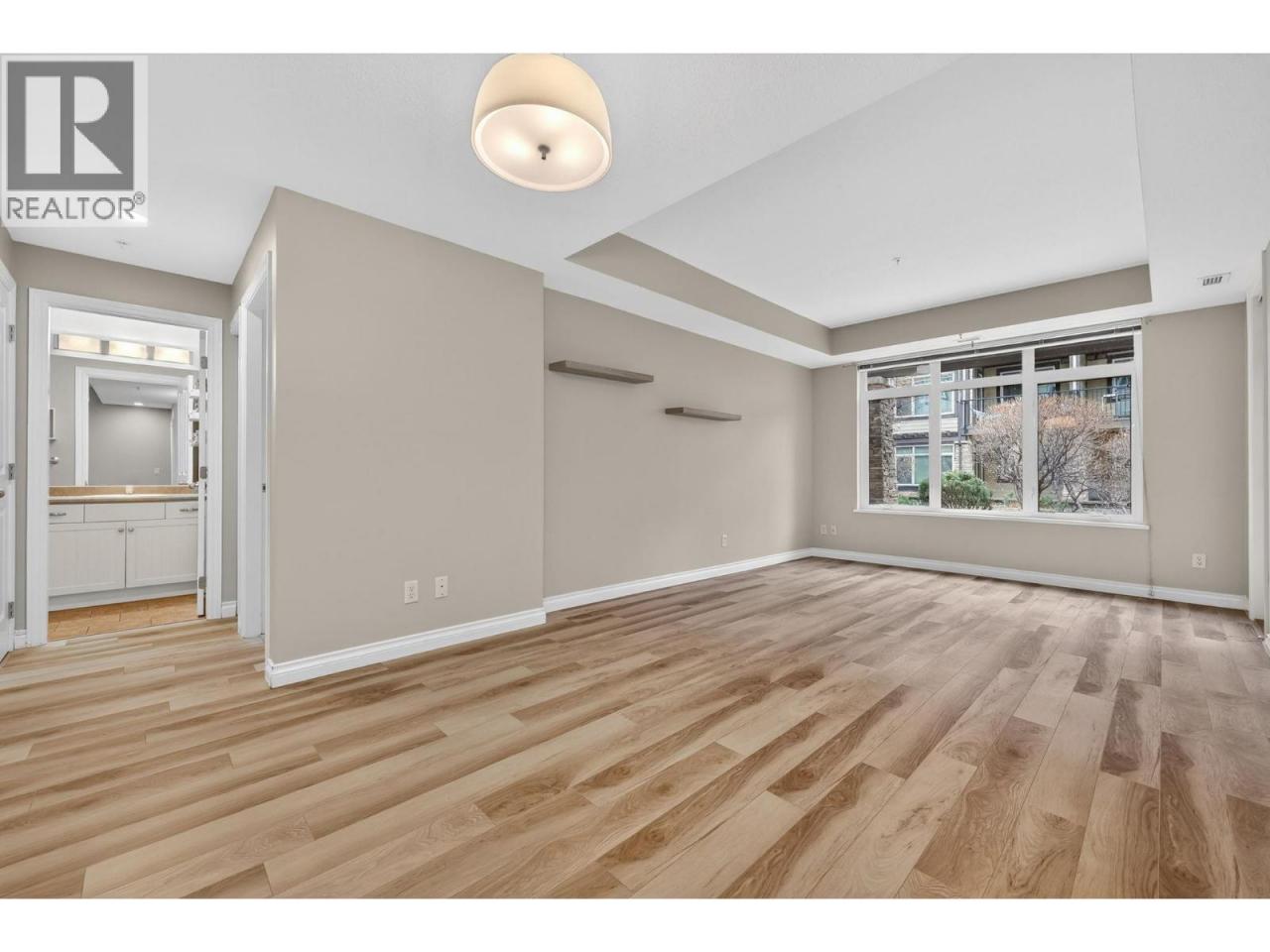 Welcome to this stunning modern ground-floor condo offering an exceptional indoor-outdoor lifestyle. The open-concept kitchen flows into the living room with walk-out access to an expansive, beautifully landscaped covered patio. Bright and airy, the home offers two spacious bedrooms plus a versatile den, white shaker cabinetry, granite counters, stainless appliances, new laminate and bedroom carpet, and a large primary suite with walk-in closet. Recent updates include furnace (2024), washer (2021) and dishwasher (2022). Plus the main building just completed renovations including new carpet and paint. Enjoy level access to resort-style amenities, a seasonal pool, year-round hot tub, games room and lounge, secure underground parking, wheelchair power door access, and strata-approved EV charger option. Steps to trails to Gellatly and Okanagan Lake and close to shops, dining, transit and community amenities. Rentals and one dog or one cat (up to 18"" shoulder) allowed. (id:6769)