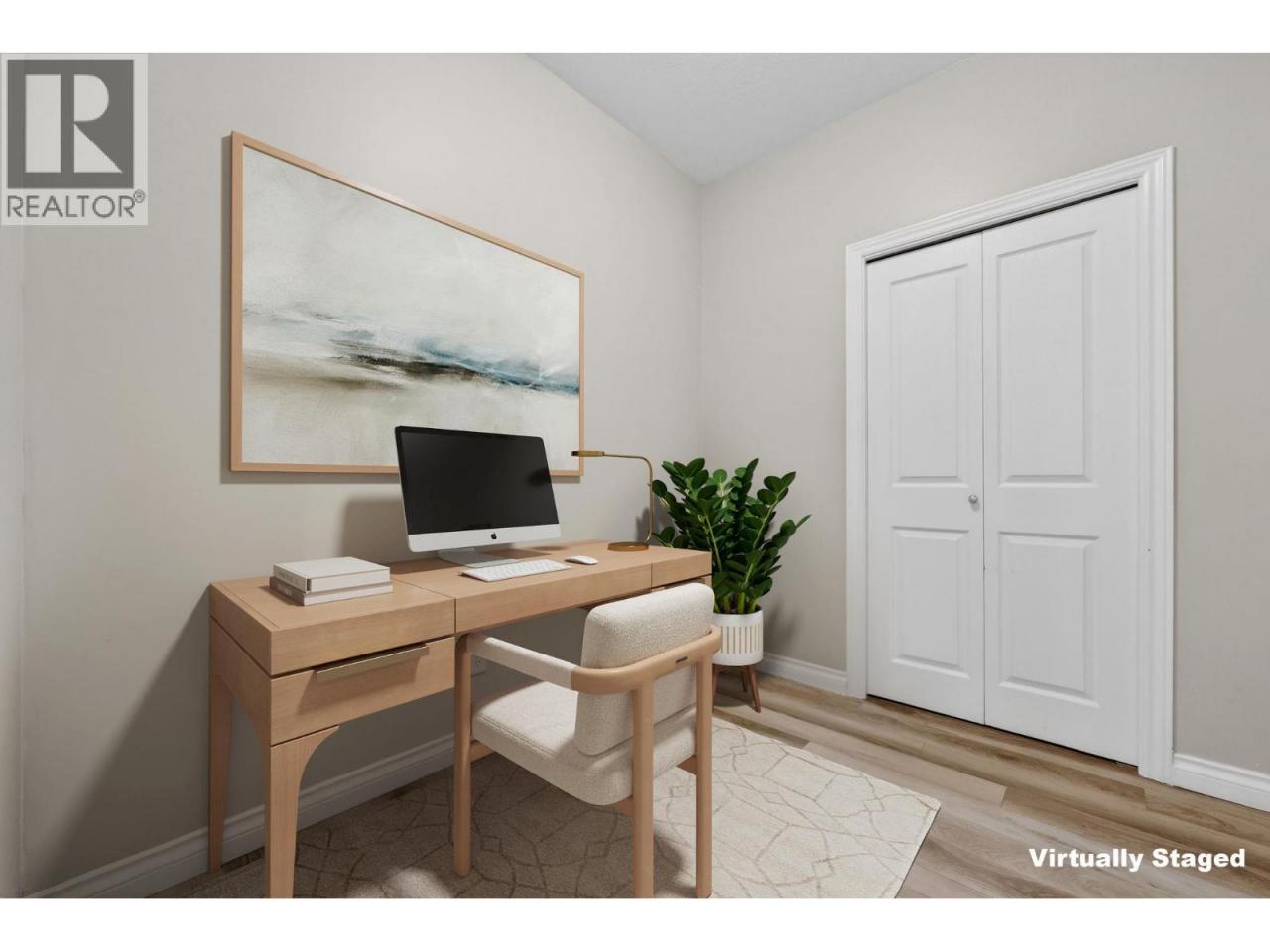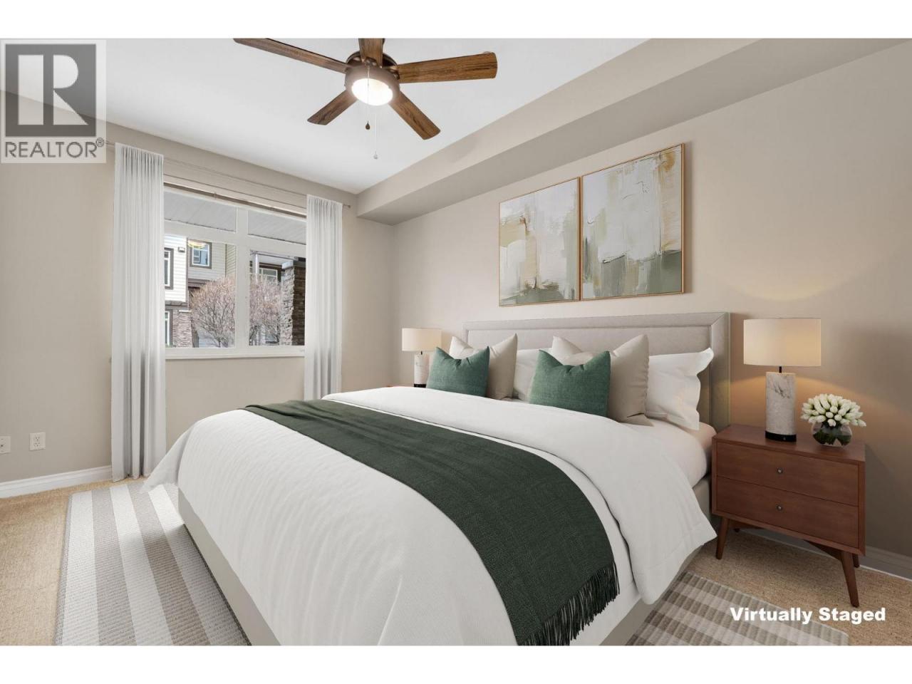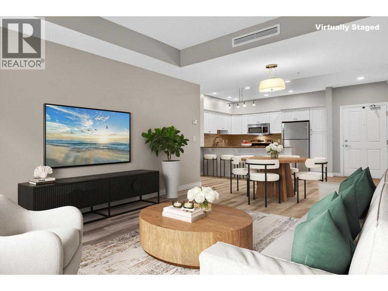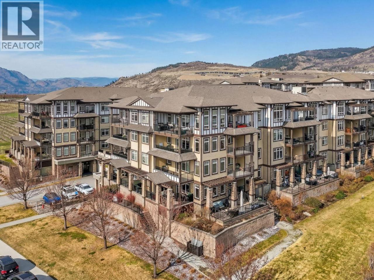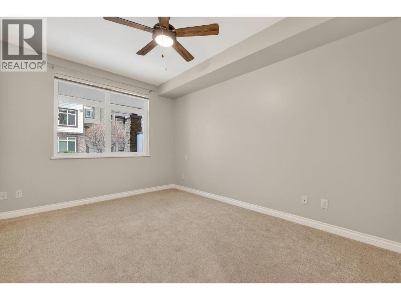 Welcome to this stunning modern ground-floor condo offering an exceptional indoor-outdoor lifestyle. The open-concept kitchen flows into the living room with walk-out access to an expansive, beautifully landscaped covered patio. Bright and airy, the home offers two spacious bedrooms plus a versatile den, white shaker cabinetry, granite counters, stainless appliances, new laminate and bedroom carpet, and a large primary suite with walk-in closet. Recent updates include furnace (2024), washer (2021) and dishwasher (2022). Plus the main building just completed renovations including new carpet and paint. Enjoy level access to resort-style amenities, a seasonal pool, year-round hot tub, games room and lounge, secure underground parking, wheelchair power door access, and strata-approved EV charger option. Steps to trails to Gellatly and Okanagan Lake and close to shops, dining, transit and community amenities. Rentals and one dog or one cat (up to 18"" shoulder) allowed. (id:6769)