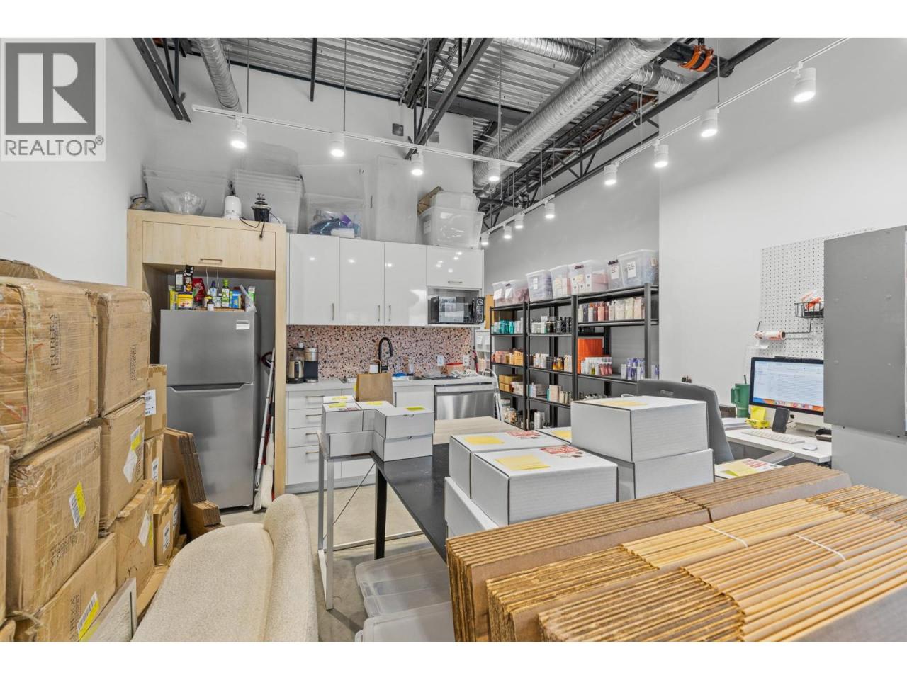 Opportunity to acquire 1,914 sq.ft. (1262 sq.ft ground level and 652 sq.ft mezzanine) of flexible industrial strata space at Powerhouse, developed by PC Urban. Located between Clement Road and Vaughan Avenue, the unit offers strong exposure and prominent signage potential. Zoned I1 – Light Industrial, with a text amendment permitting a broad range of additional uses including office, professional services, health services, personal service establishment, retail, liquor primary establishment, education services, and other permitted I1 principal uses. The premises include a high-quality existing build-out designed by Hatch Interior Designs for a hair salon concept, providing functional improvements and underlying value for potential purchasers. Features include 22-foot ceiling heights, one 10’ x 12’ grade-level overhead door, enclosed +/- 652 sq.ft. mezzanine with 50 PSF load capacity, kitchenette, and two washrooms. Two reserved parking stalls are included, with additional free street parking available along Vaughan Avenue. (id:6769)