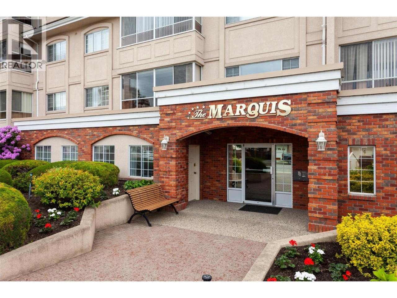 PRICED $92,000 below assessed value! Welcome to The Marquis, one of Kelowna's most sought after 55+ complexes! Walk to downtown, shopping, restaurants and waterfront park. This immaculate, 1263 square foot corner suite, on the quiet side of the building, boasts brand new carpets, laminate and tile flooring. The enclosed patio/sunroom has beautiful views of the garden. The generous kitchen includes newer stainless steel appliances, a Bosch dishwasher and lots of storage including a large pantry! The oversized windows fill the entire condo with natural light. The storage locker for this unit is located on the same floor as the condo and the parking is stall #105. Strata fees are $471.58/month, no rentals and one small pet allowed. (id:6769)