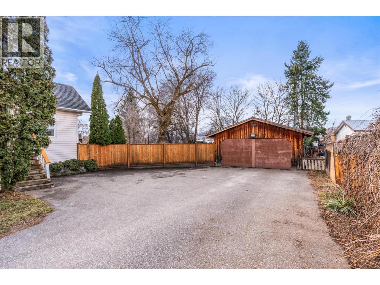 Tucked into the desirable BX neighborhood and surrounded by mature trees, this charming property offers a rare blend of privacy, outdoor space, and versatile outbuildings, all just moments from nature. Inside, the home features 3 bedrooms and 1 bathroom with a bright and functional layout designed for comfortable everyday living. The main living areas are filled with natural light, creating a warm and welcoming atmosphere throughout. With a practical floor plan that makes excellent use of space, the home is well suited for families, first time buyers, or those looking to simplify without sacrificing comfort. Step outside and discover the true charm of the property. A large fully fenced yard offers plenty of room for children, pets, and outdoor entertaining. Spend evenings gathered around the fire pit or enjoy gardening in the established beds featuring garlic, raspberries, and blueberries, all supported by a recently installed drip irrigation system. A covered private patio provides the perfect setting for quiet morning coffees or relaxed outdoor dinners. The property also includes versatile outbuildings that add tremendous functionality. A large fully powered shop is ideal for projects, storage, or parking, while a separate garden studio offers endless possibilities whether used as a creative space, hobby room, or private retreat. An additional storage shed provides even more convenient storage. Surrounded by towering mature trees, the yard transforms into a beautiful canopy when in full bloom, creating a peaceful and private outdoor setting. The location is equally appealing, situated close to Cools Pond Park and the Grey Canal Trail, offering easy access to walking, cycling, and enjoying the surrounding natural beauty. A wonderful opportunity to own a property that combines space, charm, outdoor living, versatility, and recent updates (including power) in one of Vernon’s most desirable BX locations. (Some photos virtually staged) (id:6769)