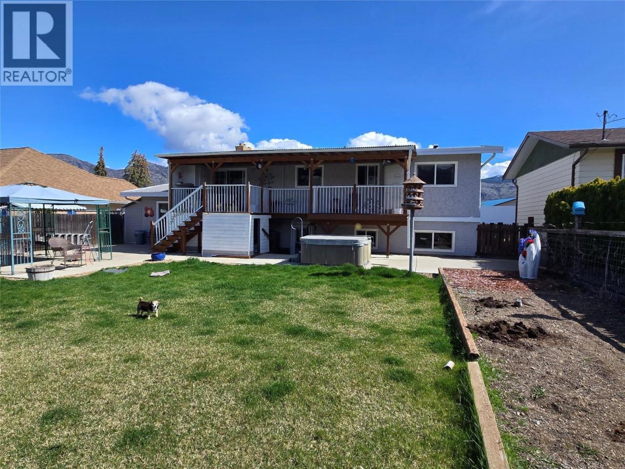 Affordable home just minutes' walk to town, beach & schools. Thoughtfully updated and meticulously kept 2 bedrooms upstairs & 2 down. Easy care tile and laminate flooring. Windows have been replaced, airconditioner in 2025, hotwater tank in 2022. Downstairs you'll find 2 bedrooms, 2nd kitchen & gas stove. Plenty of parking & single car enclosed garage. Enjoy mountain views from front and back of your home. Huge back yard ready for your green thumb or a play set for the kids! Fabulous family neighbourhood. Measurements approximate and should be verified if important. (id:6769)
