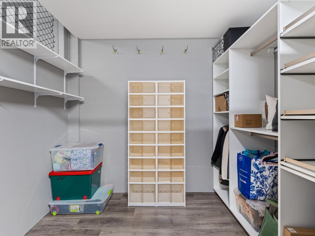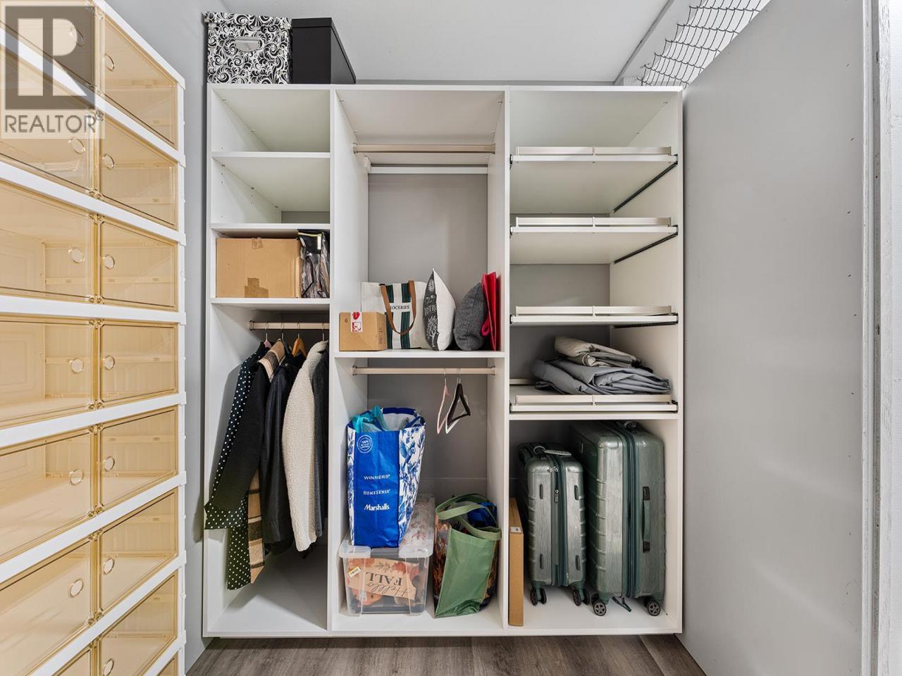 Stunning lakeview 2 bedroom, 2 bathroom condo offering two spacious balconies. This thoughtfully designed floorplan features custom finishes throughout, including over $30,000 in California Closets upgrades that add both function and a high-end, tailored feel. The chef inspired kitchen offers stainless steel appliances, custom cabinetry, a pantry, and a large island that anchors the open concept living and dining space, complete with a Dimplex electric fireplace and ideal for entertaining. The primary bedroom offers a private retreat with a beautifully appointed ensuite featuring a generous walk in shower, along with access to a covered deck perfect for morning coffee with breathtaking lake views. A second full bathroom with a bathtub provides comfort for guests or family. Enjoy year round comfort with forced air heating, central air conditioning, and on demand hot water, complemented by a fresh, modern designer colour palette that shows like new. An oversized storage locker on the same floor adds everyday convenience. At Granite, residents enjoy a rooftop hot tub outdoor pool, plus full access to McKinley Beach amenities including a marina, fitness centre, courts, gardens, and the Our Place Amenity Centre. Located 15 minutes to the airport, 20 minutes to downtown Kelowna, and 6 minutes to Glenmore shopping, this home offers the perfect blend of luxury, convenience, and lakeside living. (id:6769)