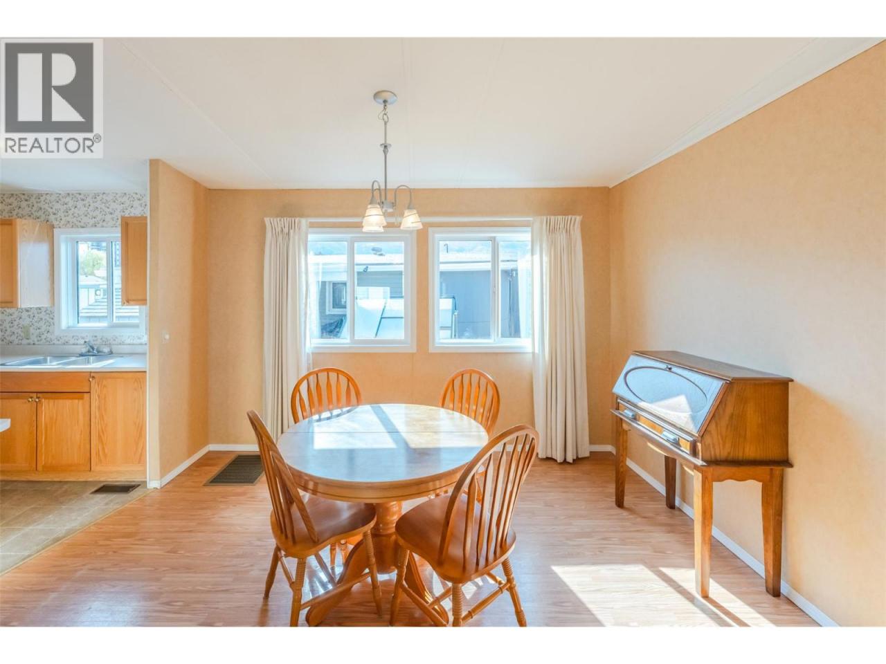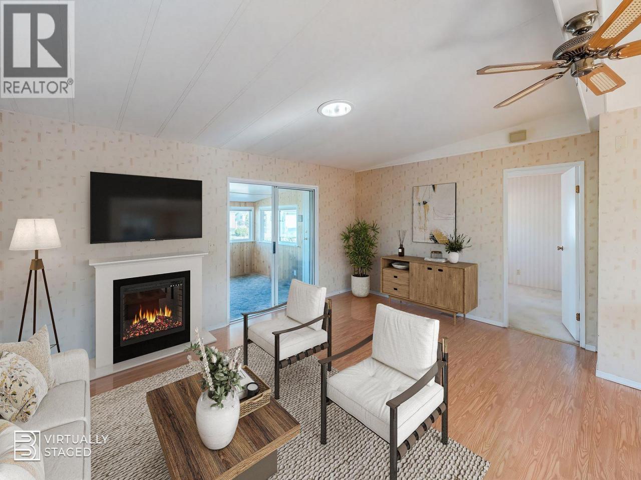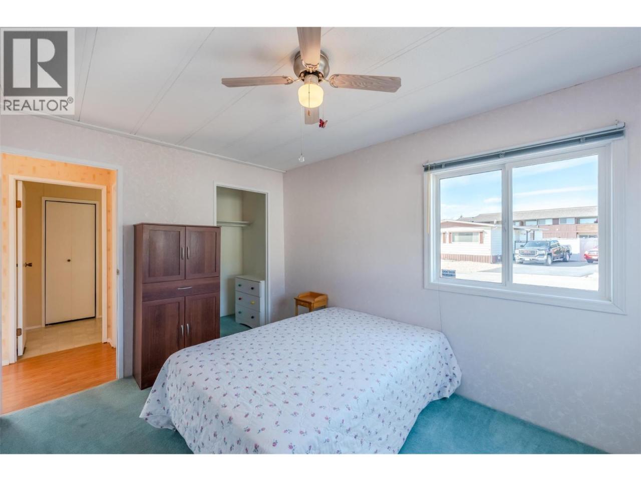Welcome to Caravilla Estates—where you own your land in a quiet, meticulously maintained bareland strata community steps to Skaha Beach, parks, shopping and more! This bright and airy 2 bed, 2 bath home features a fully open-concept layout, ideal for both everyday living and entertaining. The spacious kitchen offers ample cabinetry with convenient pull-out drawers and flows seamlessly into the dining and living areas. A beautiful sun-filled addition with a wall of windows and southeast exposure captures stunning mountain views—perfect for morning coffee. The thoughtful floorplan offers privacy with the primary bedroom featuring a walk-in closet and ensuite, while the guest bedroom and full 4-piece bathroom are located on the opposite side—ideal for visitors. Laundry and storage area. Outside, enjoy a large corner lot with space for gardening, a powered shed, one covered parking stall plus an additional open stall. Highlights include a brand new hot water tank and dishwasher, ducted heat pump system, newer windows, updated PEX plumbing throughout and a skylight for added natural light. Residents enjoy access to a recreation facility with a games room, exercise room, indoor pool, and hot tub. Strata fee is $235/monthly, 55+ community and no pets allowed. A fantastic opportunity for low-maintenance living in an unbeatable location! Quick Possession Available** (id:6769)