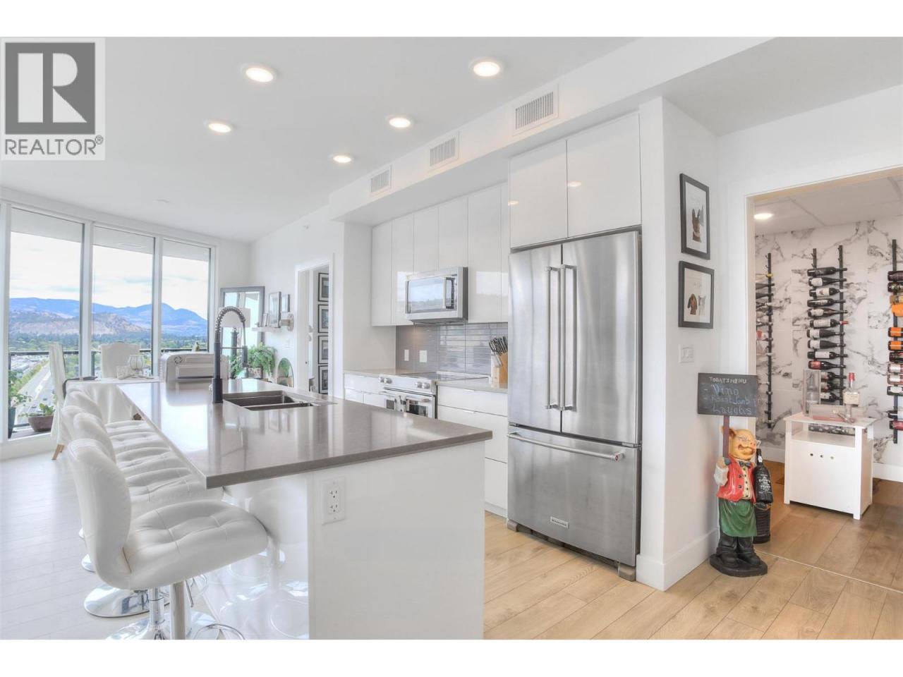 This exceptional sub-penthouse showcases luxury living at its finest, offering breathtaking lake and city views from an expansive 65-foot deck and floor-to-ceiling windows throughout. The residence features two spacious bedrooms plus a den, currently styled as a sophisticated wine room and 2.5 bathrooms. A bright, open-concept layout creates an ideal setting for both everyday living and entertaining. The gourmet kitchen is equipped with premium appliances, elegant finishes, and an oversized island with seating for six. Each bedroom includes a full ensuite with upgraded showers, while the primary suite also offers a generous walk-in closet. Professionally designed interior enhancements add a refined, modern aesthetic throughout the home. Ideally situated just moments from the beach, restaurants, and boutique shops, this residence delivers an unparalleled lifestyle opportunity. Don’t miss your chance to own this remarkable sub-penthouse defined by luxury and stunning views. (id:6769)