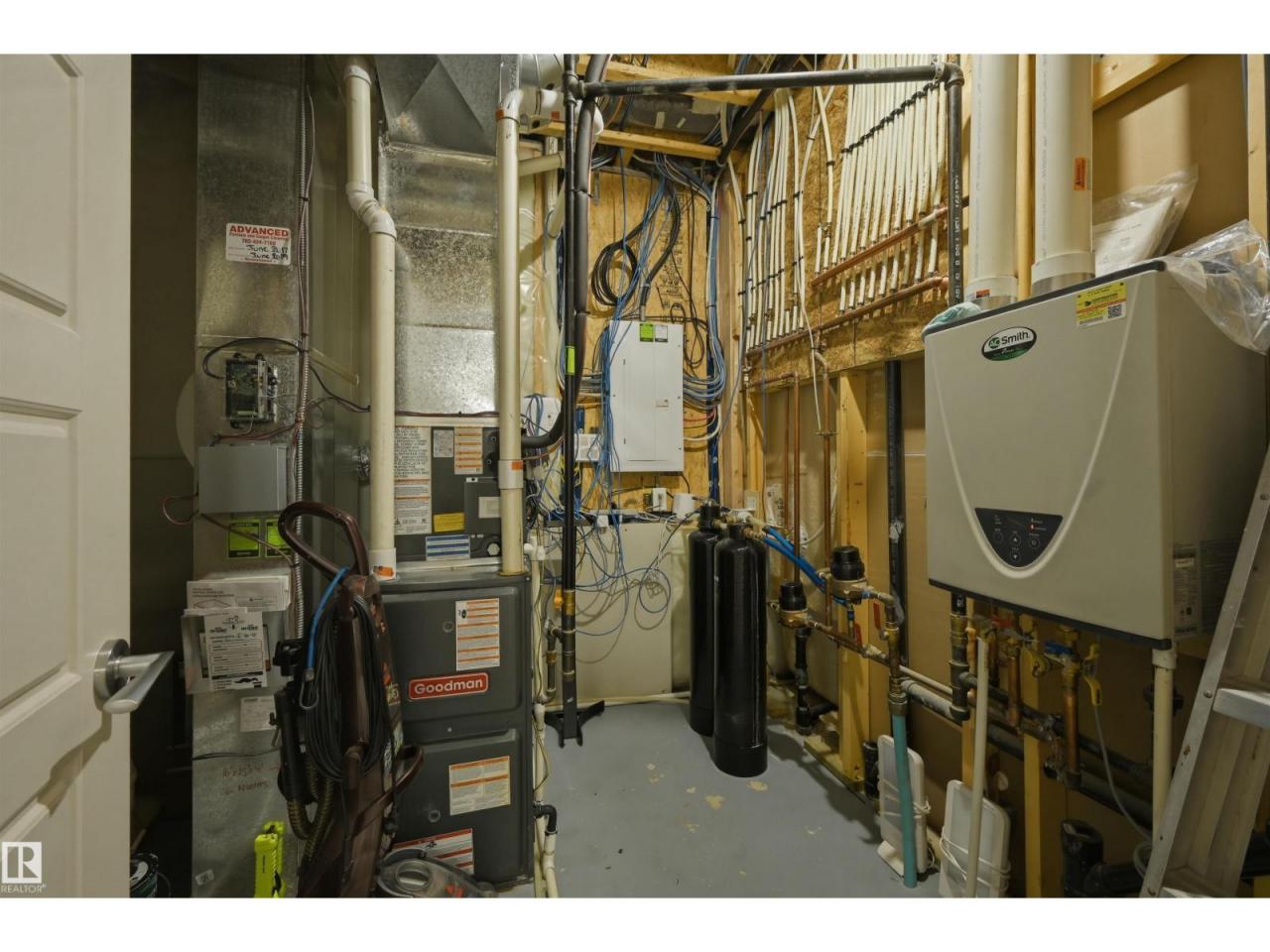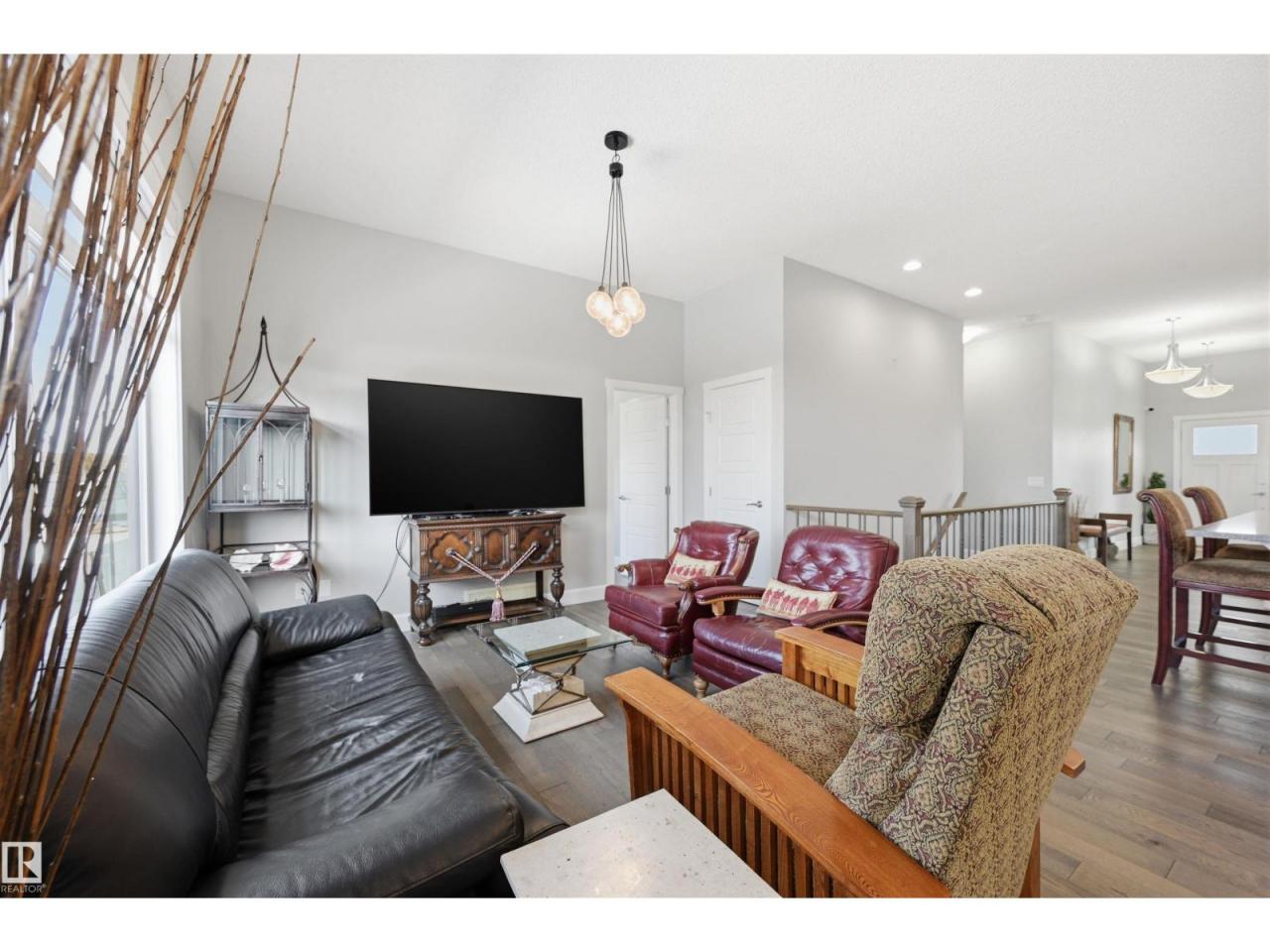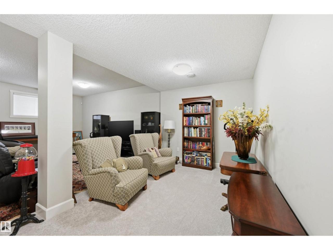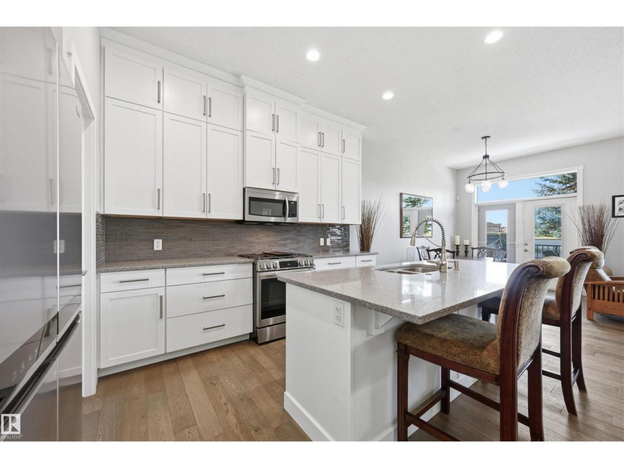 LUXURY LIVING. Perfect for Snowbirds or those who live an active lifestyle as the grass/ snow is taken care of w/low fees. If you are a car aficionado or have a big RV, this home is for you! Beautiful open concept plan boasts an abundance of natural light & 10 ft ceilings. Stunning 1228 sf home w/approx $40,000 in upgrades over the last year! Pristine 2 bedrm home w/a Chef’s kitchen w/a huge island, quartz & NEW upgraded appliances (2025). Cozy family rm off of the kitchen/dining area. Main flr flex rm can be a den or bedrm as there's a full bath adjacent. Gorgeous primary bedrm w/a spa like ensuite. F/Fin bsmt w/a massive family rm/games area & 2 bedrms (or exercise rm). Light contemporary tones throughout. Heated 34' X 47'/22' garage (16’ high/2 drains). Fits 4-7 cars (w/lift), or the 3rd bay can accommodate a full size motor home or a she shed/man cave or a golf simulator? New H/W, H20 softener, HE A/C, garage heater, new high end blinds, alarm & much more. Steps to ravine trails/parks/EIA & shopping (id:6769)