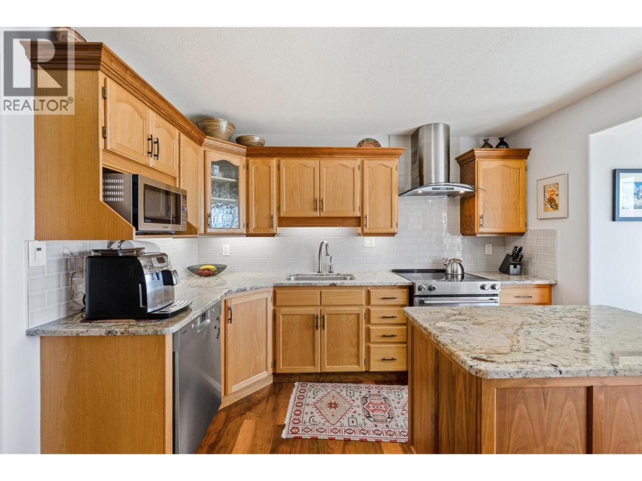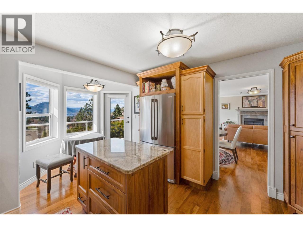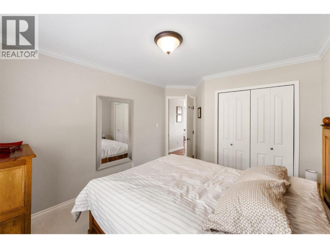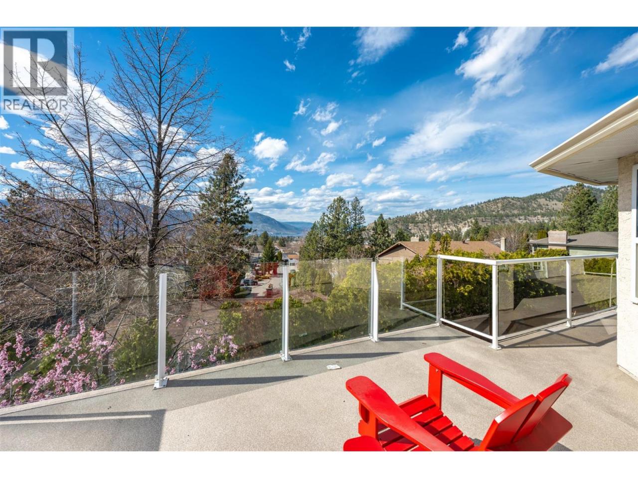 Welcome to this beautifully maintained one-owner home, proudly cared for since 1993, with thoughtful updates throughout including a new furnace and heat pump for year-round comfort. Offering over 2,700 sq.ft. with 3 bedrooms and 2 bathrooms, the home features a functional, comfortable layout with spacious living areas and abundant natural light. The bright lower level includes a separate walkout entry, roughed-in bathroom, and offers excellent potential to add one or two additional bedrooms, a suite, or a home office. Set on a private lot with city, lake, and mountain views, mature cedar trees provide exceptional privacy, while the low-maintenance yard makes for easy living. A wonderful opportunity offering great value in a desirable location, close to amenities and ready for its next owner. (id:6769)