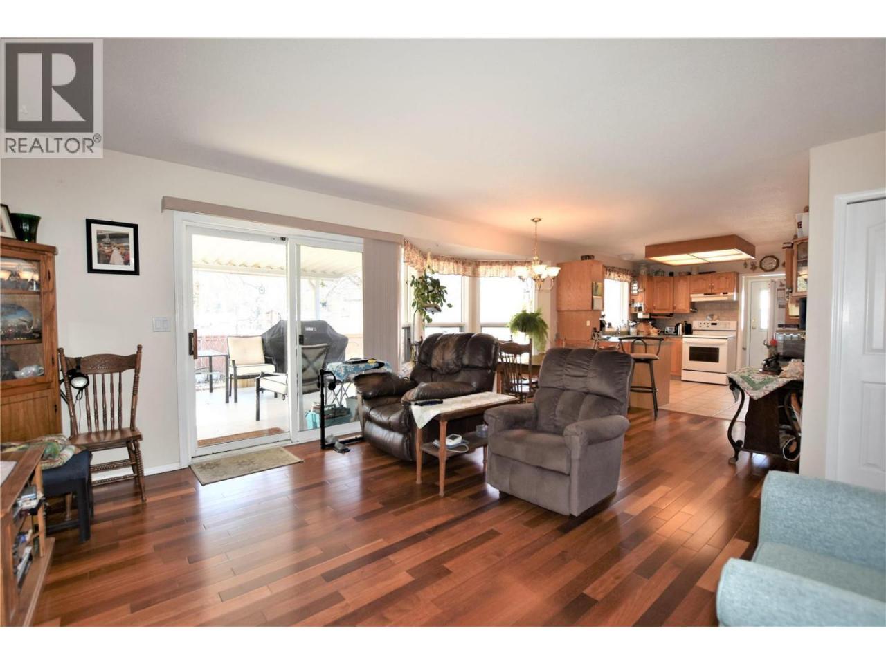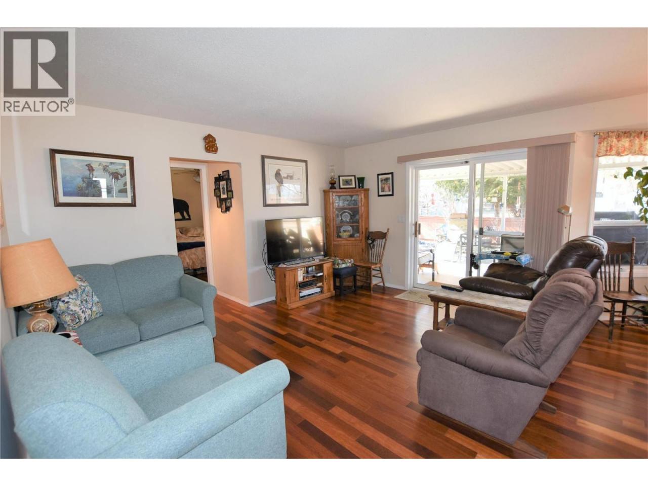 Welcome to 536-537 Loon Avenue, Parker Cove Charming 3-Bedroom Rancher on Double Lot with Mountain Views. This beautifully maintained 3-bedroom, 2-bathroom rancher is located on a spacious double lot in the serene lakeside community of Parker Cove. This inviting home features an open-concept main living area adorned with gleaming hardwood floors, while the kitchen, entryways, and bathrooms are finished with durable ceramic tile. The kitchen offers ample storage with abundant oak cabinetry and seamlessly flows into the dining and living areas—perfect for entertaining. The generously sized 21x21 family room boasts a cozy pellet stove and large windows that flood the space with natural light. The primary bedroom is a relaxing retreat with dual closets and a 3-piece en-suite. Step outside to enjoy your morning coffee on the covered front patio, overlooking dedicated green space and beautiful mountain views—a perfect spot to relax or chat with neighbors. Additional highlights include: Fully landscaped and fenced backyard Covered back patio and fish pond RV parking with 30-amp power Storage shed and upgraded attic insulation 5-foot crawl space for added storage 4-year-old hot water tank Poly B plumbing has been replaced. Gardeners will appreciate the mature landscaping and room to grow. This home includes a registered lease until 2043, with a current lease amount of about $5,889.64 for the double lot. Residents also enjoy shared access to over 2,000 feet of prime Okanagan lakefront—ideal for summer fun and relaxation. Don’t miss the chance to live in this peaceful lakeside community—schedule your private viewing today! (id:6769)