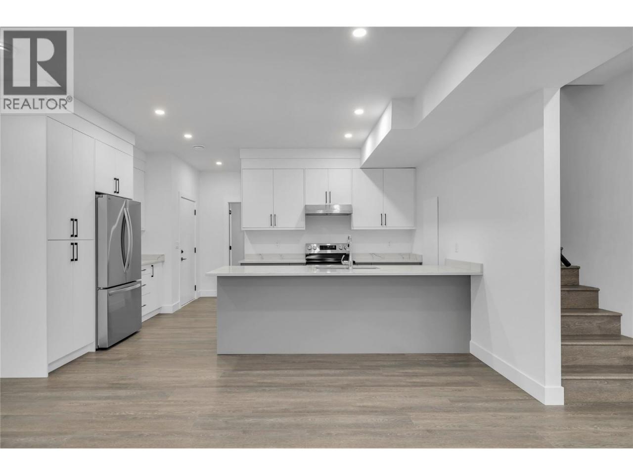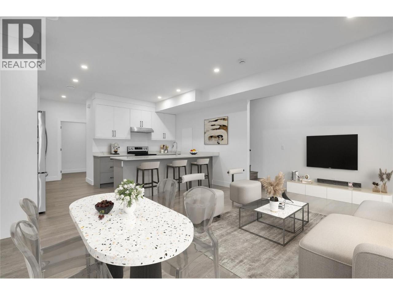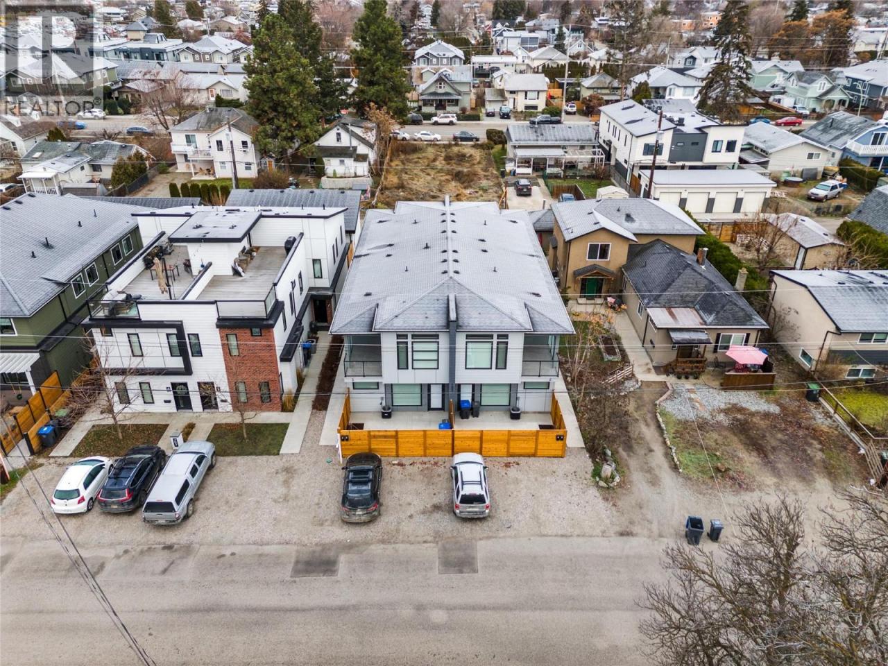 Welcome to this stunning brand-new 3-bedroom townhouse, ideally located just minutes from the hospital, offering both convenience and modern living at its finest. Fantastic parking situation with 1 large dedicated space from the lane, plus plenty of street parking including 4 open spaces at the front of the complex. This beautifully designed home features an open-concept floor plan with bright, airy living spaces, making it perfect for entertaining or relaxing with family. The stylish kitchen boasts sleek quartz countertops, two tone cabinets with black hardware, stainless steel appliances, ample cabinet space plus additional storage under the stairs. The large island offers lots of room for stools and the massive laundry/utility room provides a great flex space for fitness equipment, a desk or storage for bikes and other sporting gear. A door off the living room provides access to the private, fenced patio area perfect for outdoor dining or simply enjoying the fresh air. Each of the three generously sized bedrooms offers plenty of natural light, with the primary suite featuring a great closet with built in storage and an ensuite bathroom with large shower and double sinks for added comfort and privacy. The primary also features an incredible covered balcony. This central location is fantastic for easy access to public transportation and the wonderful shopping and dining of the Pandosy area. Don't miss the opportunity to call this beautiful new townhouse your home! (id:6769)