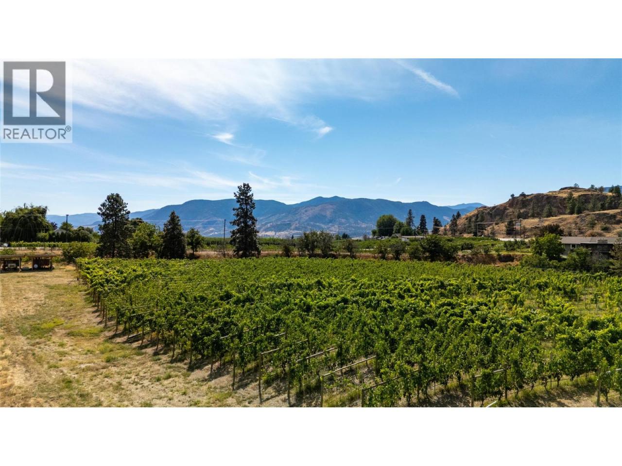 Welcome to 1275 Munson Avenue – a truly rare offering in one of the most sought-after locations in Penticton. Nestled in the heart of the Upper Bench, this stunning agriculturally zoned 10+ acre property lies in the middle of the most rapidly growing and producing wine region in the country. Located beside the Penticton landmark of Munson Mountain and situated directly along the renowned Naramata Bench Wine Trail, this exceptional parcel boasts a 3-acre producing vineyard, planted with 1.5 acres of Chardonnay, 0.75 acres of Merlot, and 0.75 acres of Cabernet Franc. With 7 additional acres of usable land, the potential here is limitless—whether you're envisioning your own boutique winery, expanding the vineyard, or creating a breathtaking estate home. The property’s elevated position offers spectacular, unobstructed views across Okanagan Lake and the rolling hills of the South Okanagan, providing an unparalleled backdrop for you to bring your dreams to life. At the heart of the property sits the original 1940s farmhouse, brimming charm and character. Featuring two bedrooms, one bathroom, a spacious kitchen, and open living areas, plus an unfinished basement ideal for storage, equipment, or future development into a third bedroom or office, this home is perfect for a small family, guest residence, or rental income. Whether you're an aspiring winemaker, a visionary builder, or simply looking to own a piece of Okanagan paradise, don’t miss this rare opportunity! All msmts approx (id:6769)