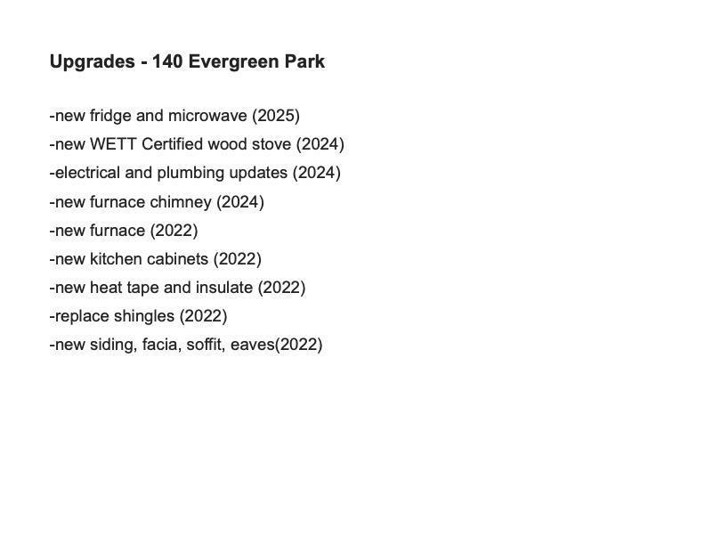 Welcome to this beautifully maintained home in the family-friendly Evergreen Community! Featuring 3 bedrooms and 2 bathrooms, this property offers comfort, space, and peace of mind with extensive upgrades over the years, including plumbing, furnace, electrical, kitchen, roof, siding, deck, insulation, and more. The bright living room is highlighted by a brand new WETT certified wood stove, perfect for cozy evenings. The updated kitchen comes equipped with newer cabinets & stove and a brand new fridge and microwave. The spacious primary bedroom will easily fit a king-sized bed and includes beautiful wood built in closets and a private ensuite. The 4 piece main bath features a nice big soaker tub! Enjoy the convenience of a dedicated laundry area with large capacity machines. Outside a double paved parking pad, and large lot provides plenty of privacy with neighbours a good distance away—ideal for families, pets, or entertaining. A move-in ready home with thoughtful improvements throughout! (id:6769)