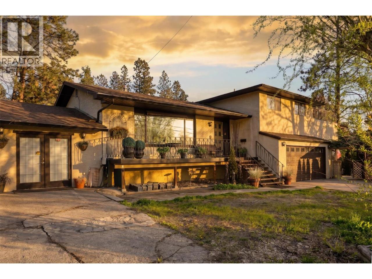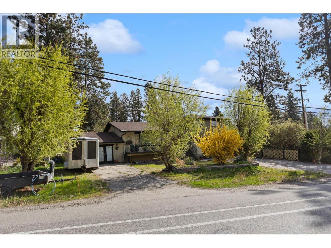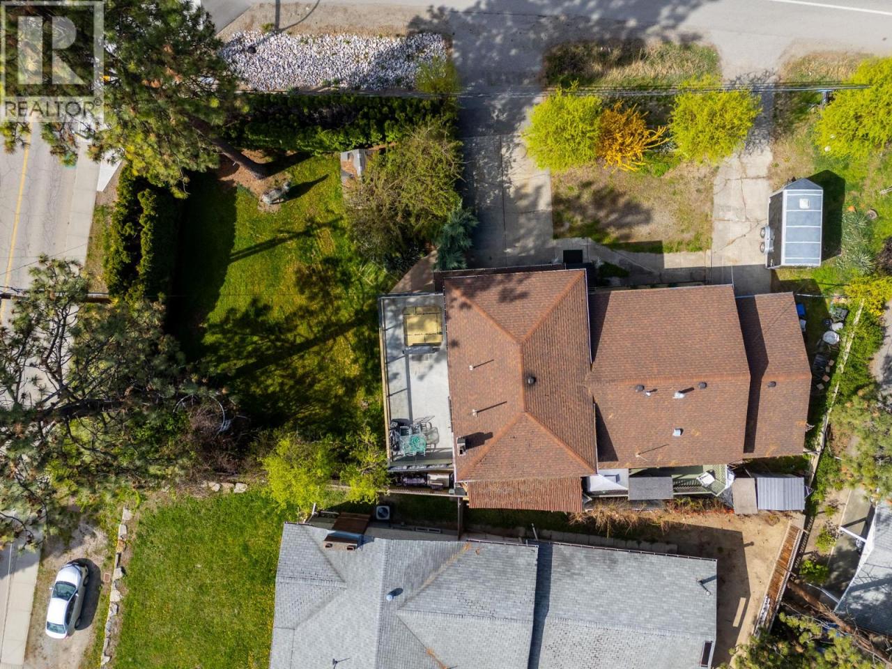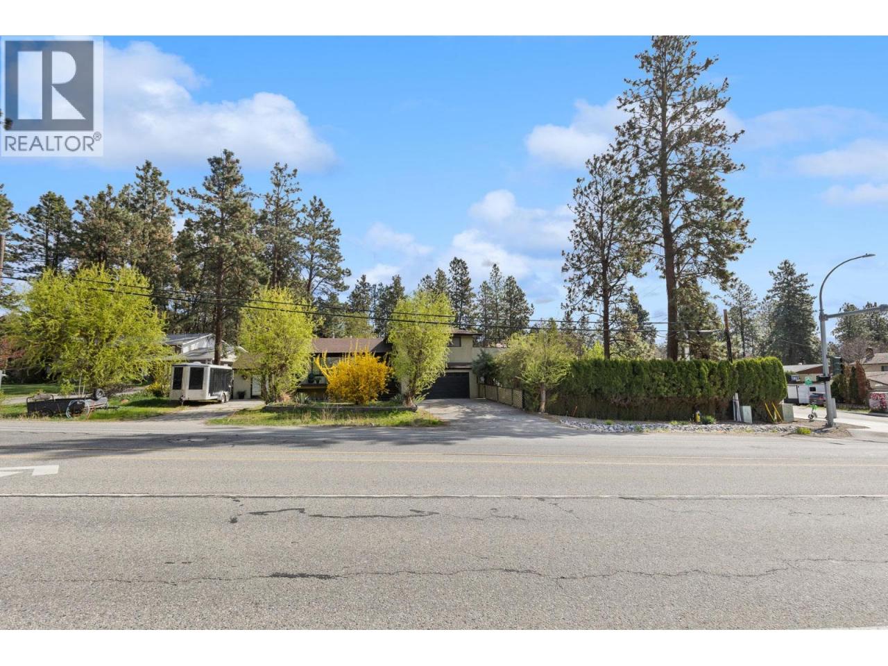 Exceptional 9,975 sq ft corner lot in one of Kelowna’s most sought-after urban areas, offering space, privacy, and versatility. This beautifully updated split-level home is thoughtfully positioned on one portion of the lot, creating a sense of openness with mature landscaping and room to enjoy both indoor and outdoor living, while also allowing for future development or the opportunity to redevelop the entire site. Move-in ready, the home features 3 bedrooms, 3 bathrooms, and a beautifully renovated kitchen with wood cabinetry and high-end appliances. The main level opens to a spacious living and dining area with seamless access to a private patio—ideal for indoor-outdoor living. Upstairs includes three large bedrooms, including a primary suite with walk-in closet and ensuite. The lower level has a cozy family room with a custom stone wood-burning fireplace and access to a covered wraparound patio. A rec room, built-in office, laundry, and storage room complete the basement—perfect for guests, workspace, or relaxing and so much storage space.. Parking is ample with a double attached garage, single garage converted to storage room, and circular driveway for RVs or recreational vehicles. The landscaped yard features mature trees and lush gardens, creating a private outdoor retreat. Zoned MF1, the property also offers future flexibility and long-term potential in a prime central location. (id:6769)