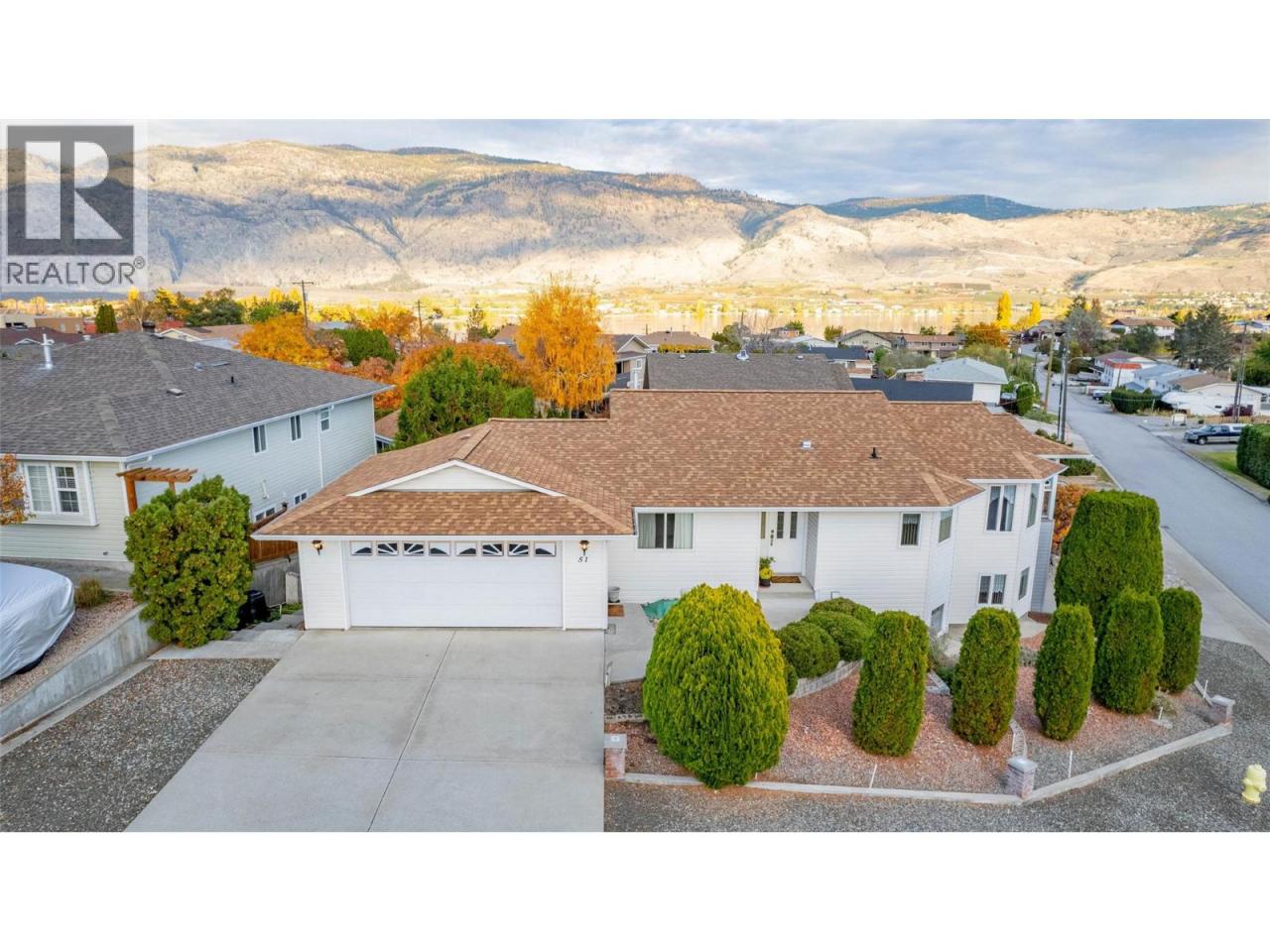 LAKEVIEW home on a CORNER LOT, with ATTACHED DOUBLE GARAGE, WORKSHOP and high-clearance RV GARAGE. Ideal for your RV, boat, or oversized truck. Walk in on the main level to a welcoming living room with a cozy fireplace, a separate dining area, and a bright, functional kitchen. Two bedrooms and two full bathrooms are located on the main floor, including a primary suite with a 3-piece ensuite and walk-in closet. Step outside onto the VIEW DECK and take in the view or enjoy the second covered deck conveniently located off the laundry room. Downstairs, you’ll find a spacious 2-BEDROOM IN-LAW SUITE with its own private entrance, perfect for extended family or guests. Equipped with a newer furnace and central air conditioning and there is plenty of extra storage. This Xericaped property is low maintenance, and it's on a no-through street. Just minutes from shopping, dining, and Osoyoos Lake! (id:6769)
