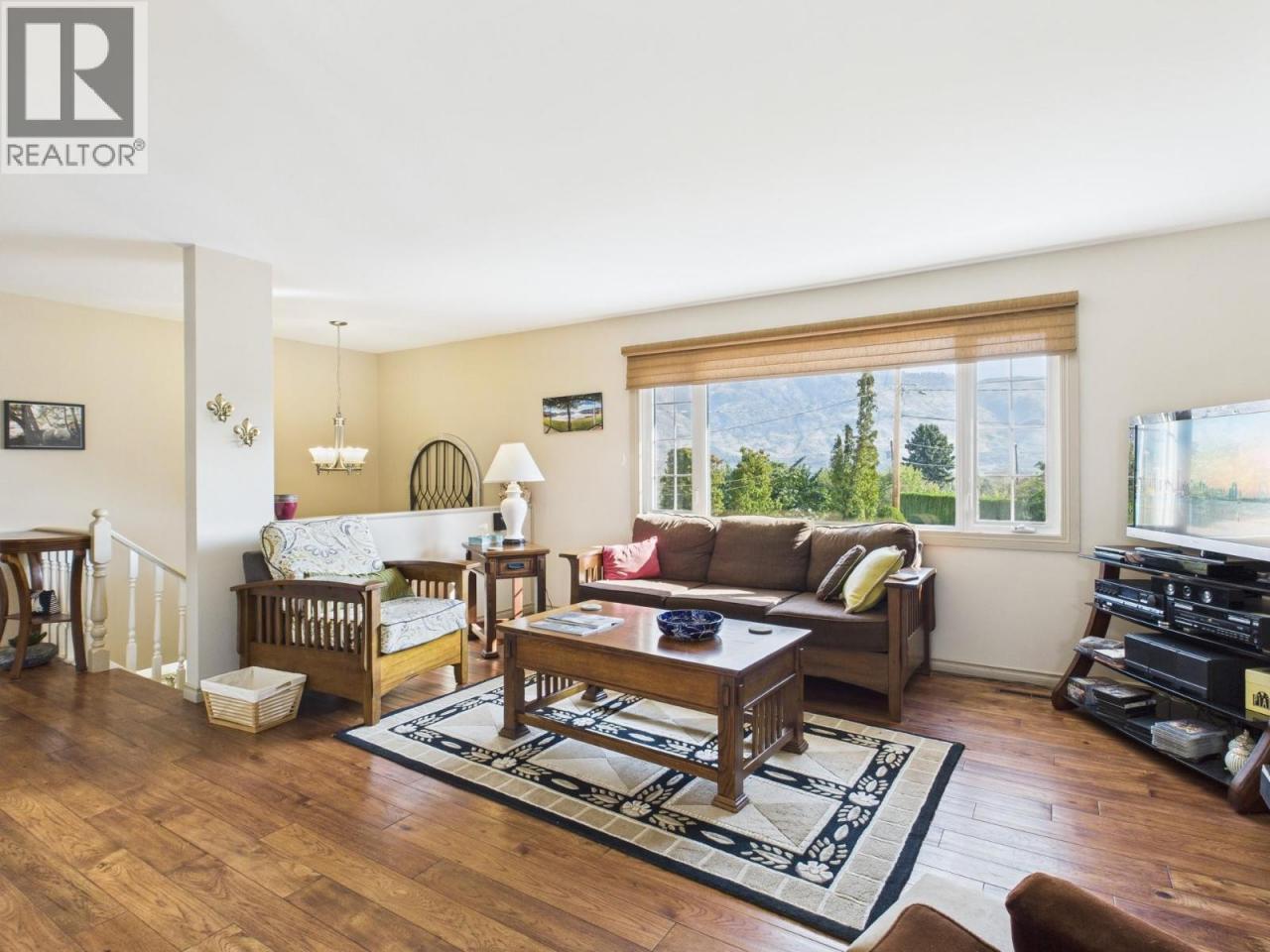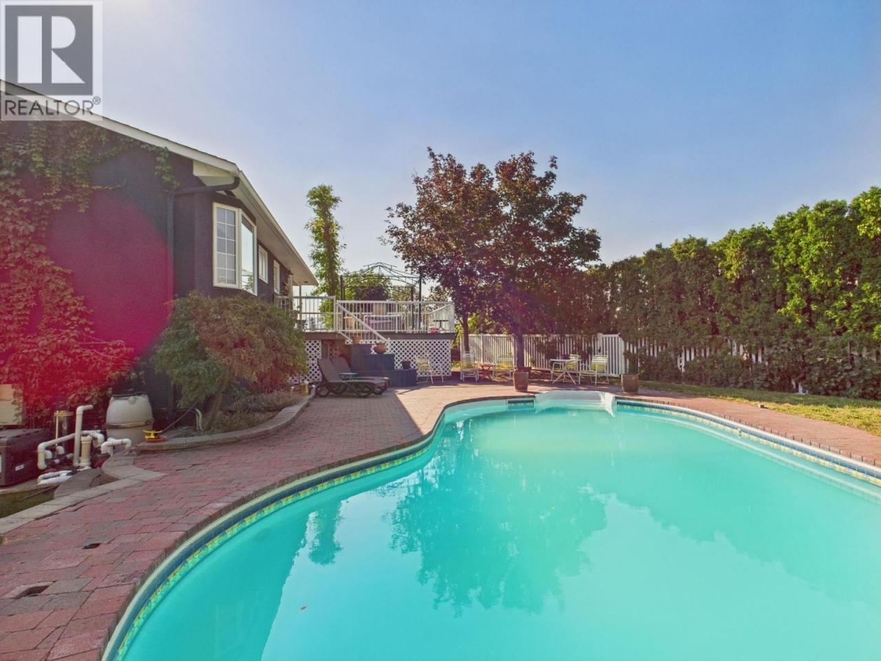 This 4 bedroom home offers easy Okanagan living. Upstairs you'll find 3 bedrooms, primary with 2 piece ensuite. The living room showcases a gas fireplace & lakeview. The kitchen has been opened to the living area for inclusive entertaining and the dining area opens to a family size deck overlooking the inground pool, accented with brick surround. The lower level is perfect for extended family featuring 3 piece bathroom, spacious bedroom & recroom for family movie nights. Nothing to do in this home but move the family in. Perfectly located to walk to all amenities: elementary or high school, shopping, park & rec centre. Long driveway to accomodate offers much parking & room for your RV. Call today to view. Measurements to be verified if important. (id:6769)