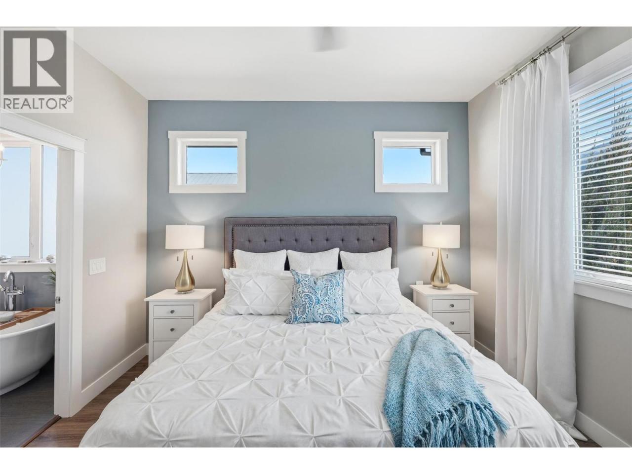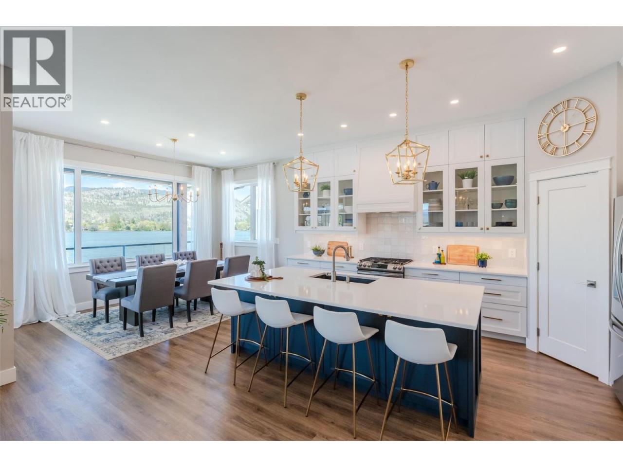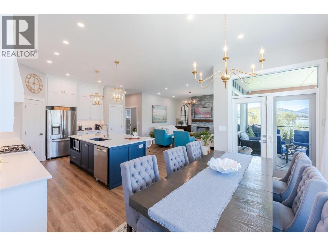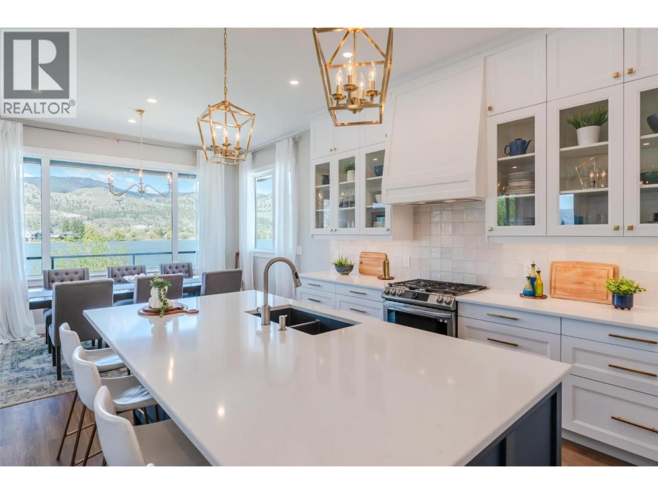 Experience refined lakeside living in Canada's Wine Capital! Framed by sweeping mountain vistas in the sunny South Okanagan, this nearly-new, custom-built, Craftsman-inspired residence on spring-fed Tucelnuit Lake offers an exceptional, rarely available lifestyle opportunity. Designed for contemporary living, the principal residence features soaring ceilings, and oversized windows that flood the interiors with natural light. The main level boasts an entertainer's dream kitchen with massive island, solid surface counters, duel-fuel range, and storage galore, plus bright, open living spaces that flow seamlessly to the expansive rear deck. This level also features the generous primary suite with spacious walk-in and indulgent spa bath. Two stacked-stone gas fireplaces serve as focal points for the living room and the spacious, lower-level recreation room with full kitchen and walk-out to the covered patio, rear yard, and lake beyond. 2 additional bedrooms, full bath and laundry complete the lower level. The detached carriage house provides flexibility for extended family, guests or rental income. Enjoy the peaceful, electric-motor-only lake ideal for swimming, kayaking, paddleboarding, canoeing and fishing. Just minutes to the District Wine Village, Area 27 Racetrack, and premier golf courses, and with Mount Baldy Ski Resort just a scenic 40 minute drive away, this home offers a true 4 season lifestyle in an idyllic setting. Dimensions approximate. Buyer to verify if important. (id:6769)